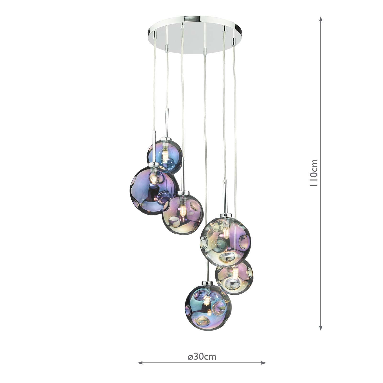 Mira 6 Light Cluster Pendant Polished Chrome Iridised Glass