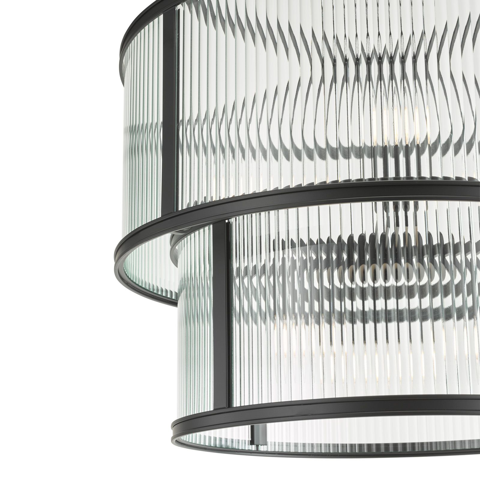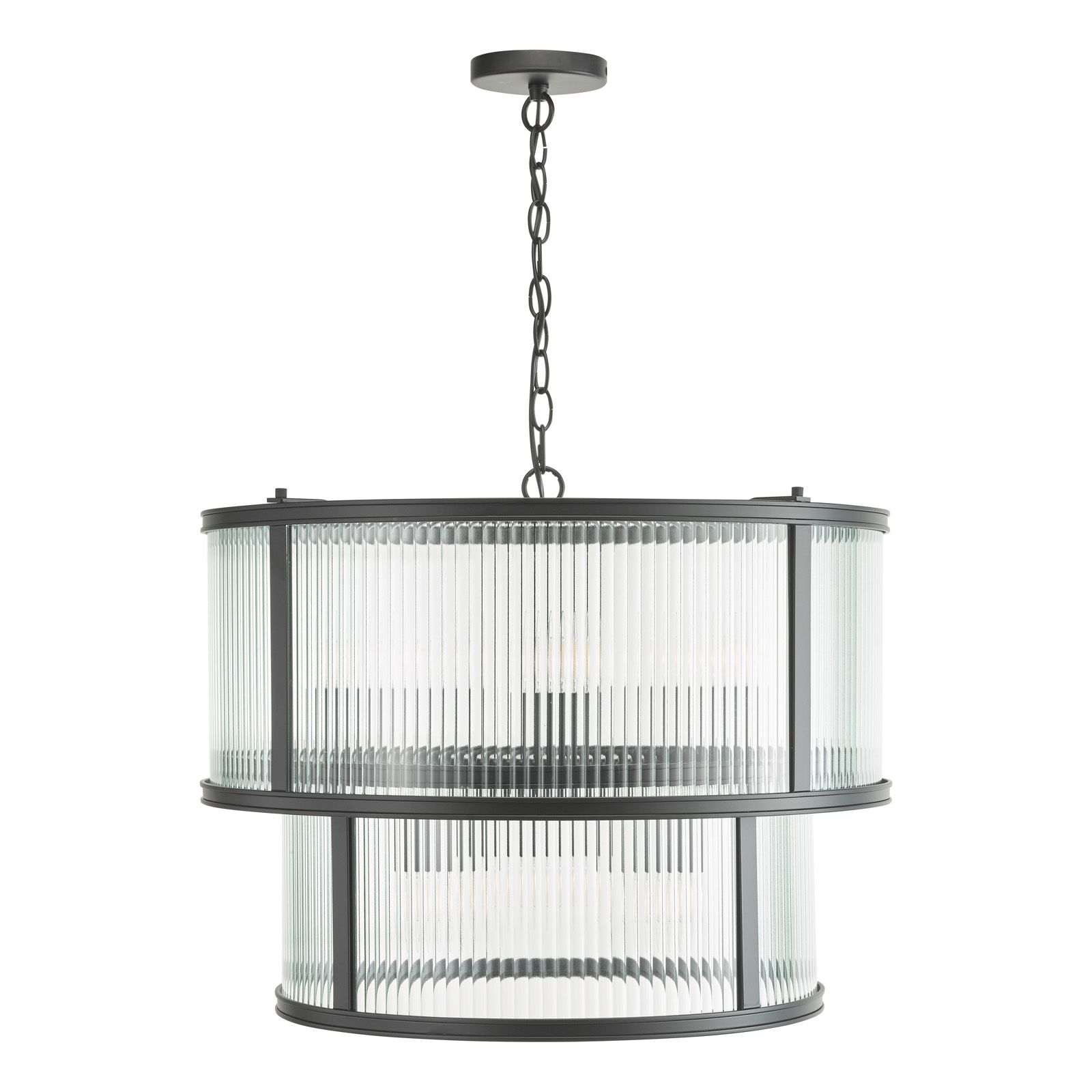 Bianka 6 Light Pendant Matt Black and Ribbed Glass