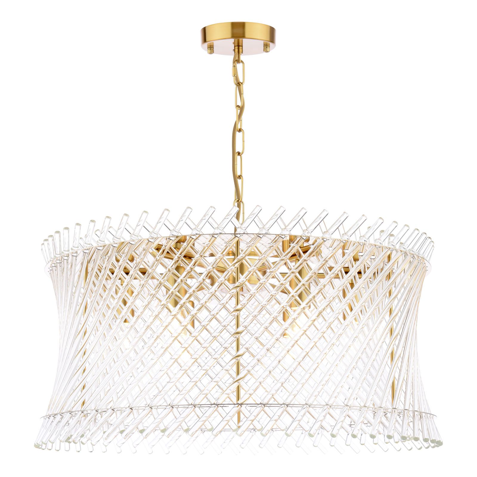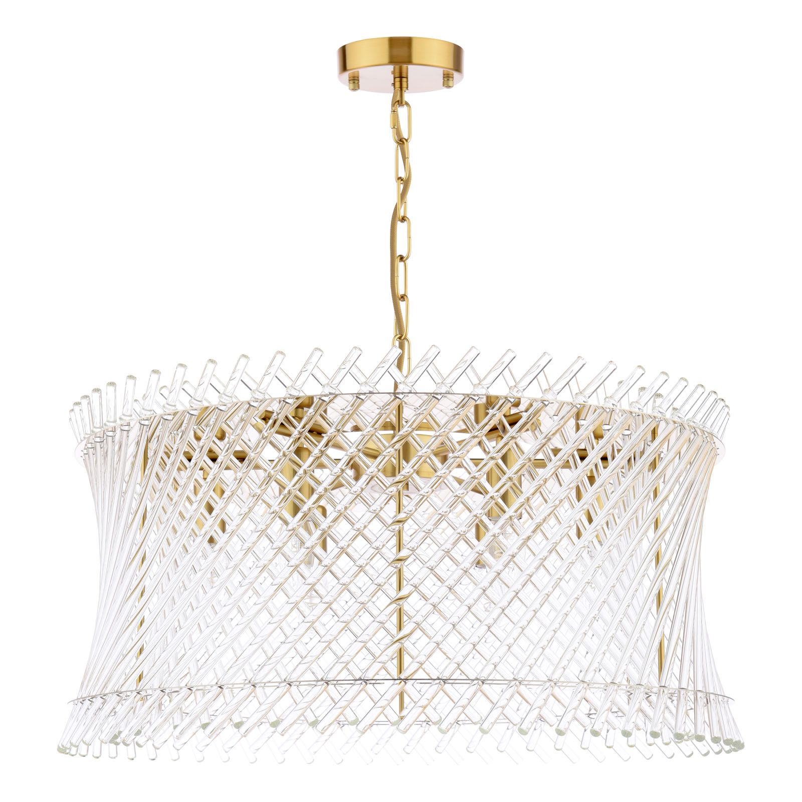 The Loire 6 Light Pendant brings sculptural impact to larger interiors, combining warm natural brass with an intricate arrangement of slender glass rods. The wpven design creates depth and movement, while six lights deliver a generous spread of softly diffused illumination. Ideal for dining tables, living spaces or statement ceilings, Loire balances decorative presence with refined elegance, offering a striking focal point that enhances the room without overwhelming it.