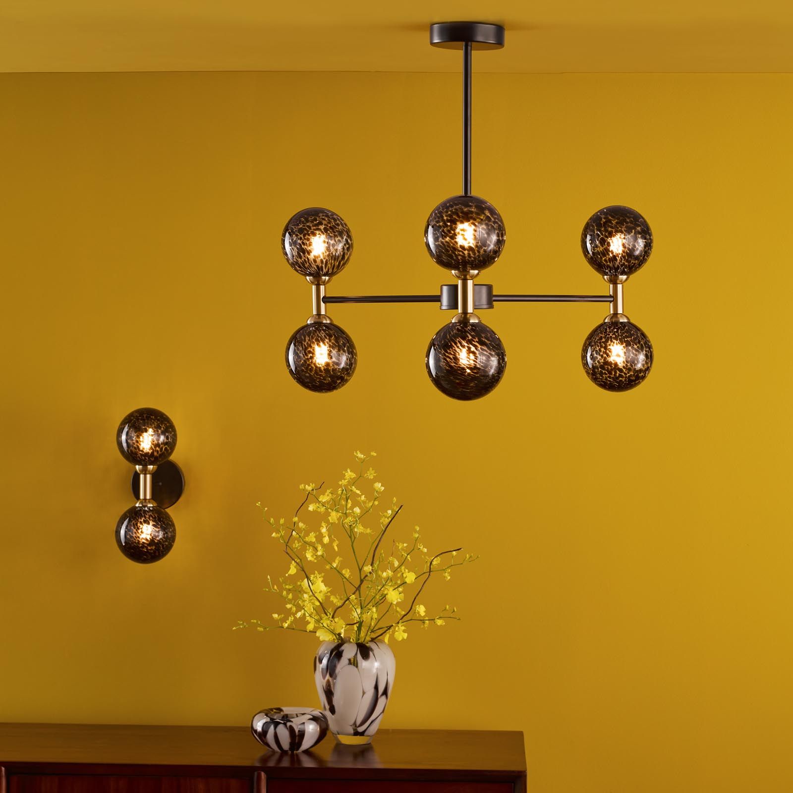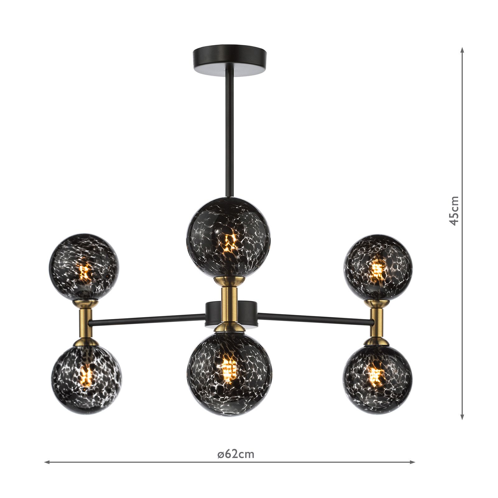 Takara 6 Light Semi-Flush Matt Black and Bronze With Black Confetti Glass