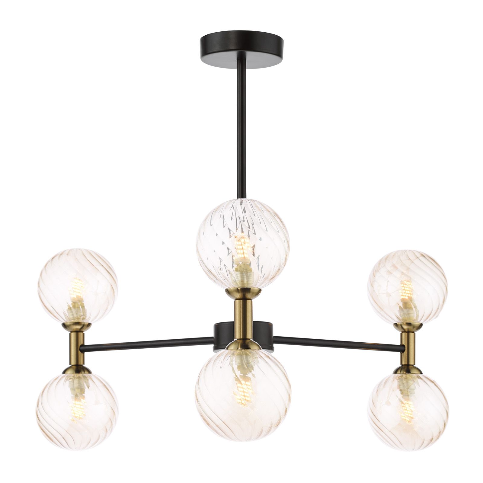 Takara 6 Light Semi-Flush Matt Black and Bronze With Twisted Amber Glass