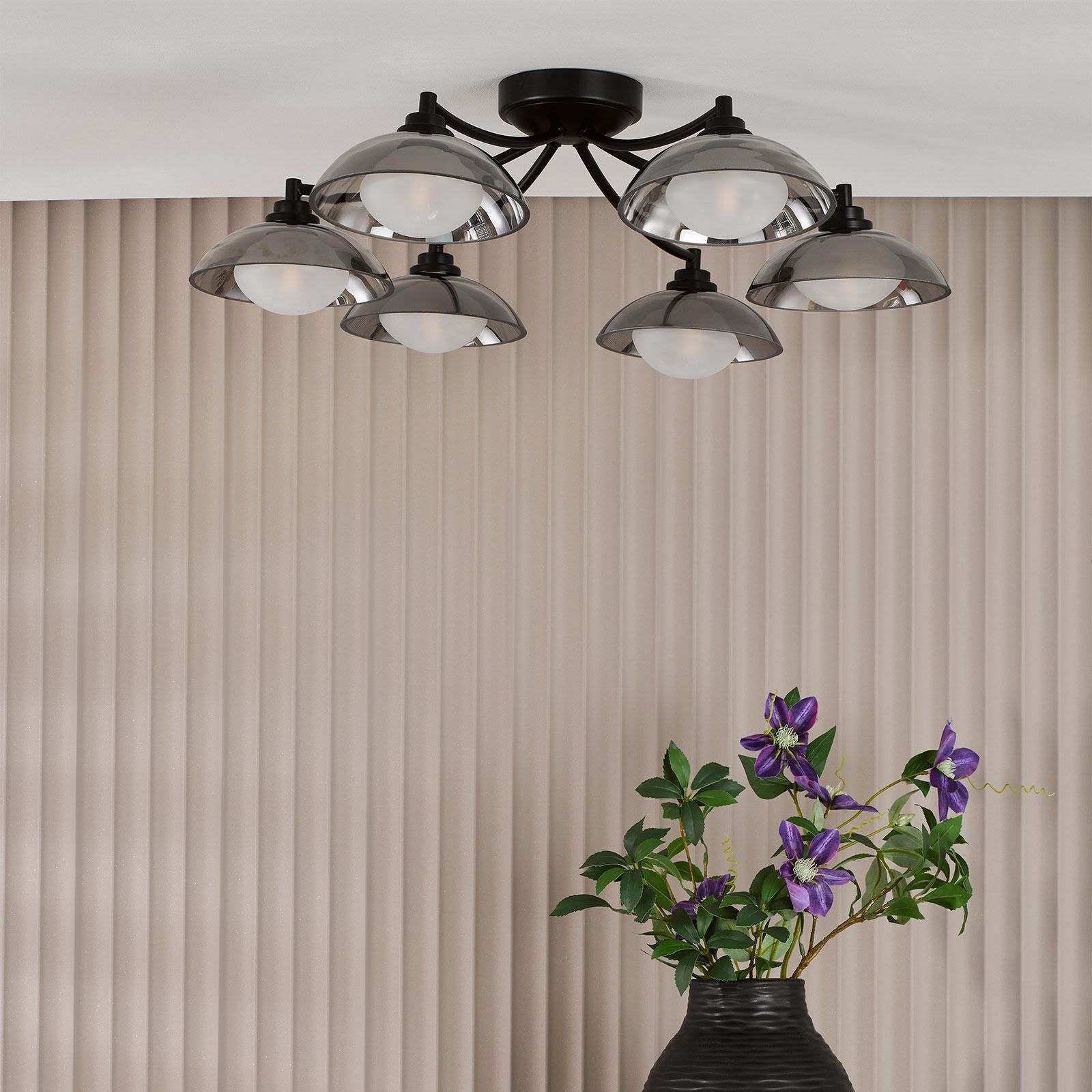 Kadience 6 Light Semi-Flush Satin Black and Smoked Glass
