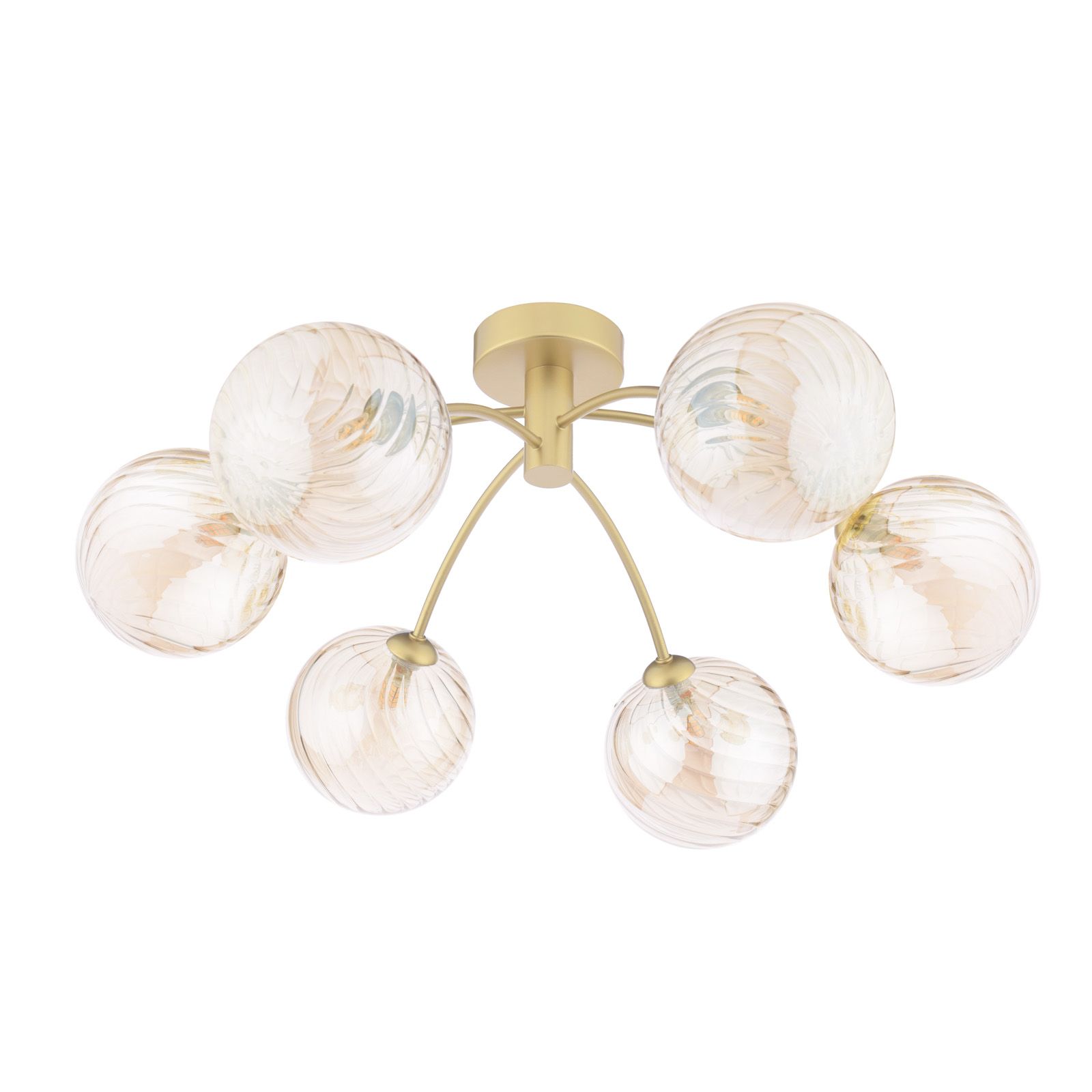 Izzy 6 Light Semi-Flush Matt Gold With Twisted Amber Glass