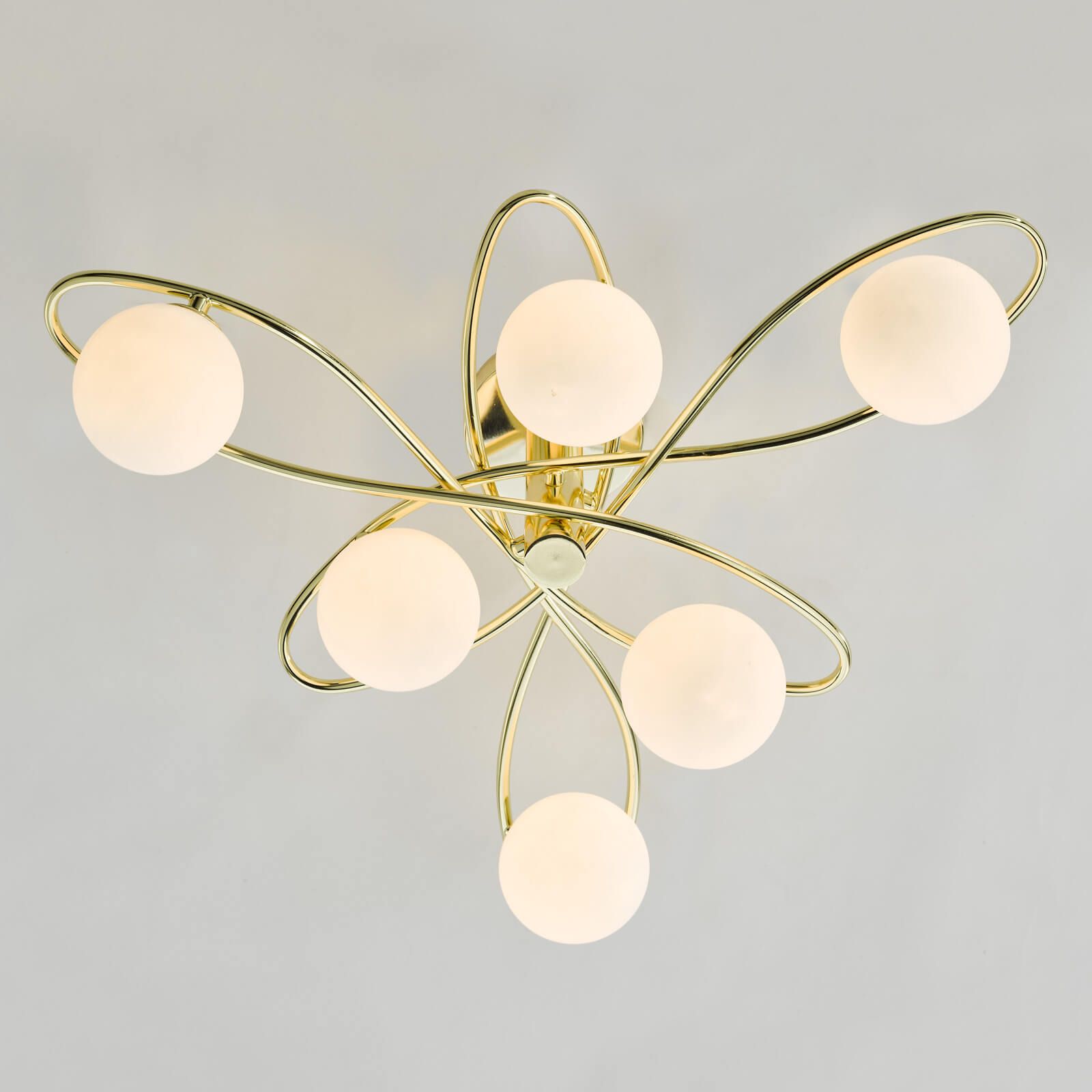 Lysandra 6 Light Semi-Flush Polished Gold and Opal Glass