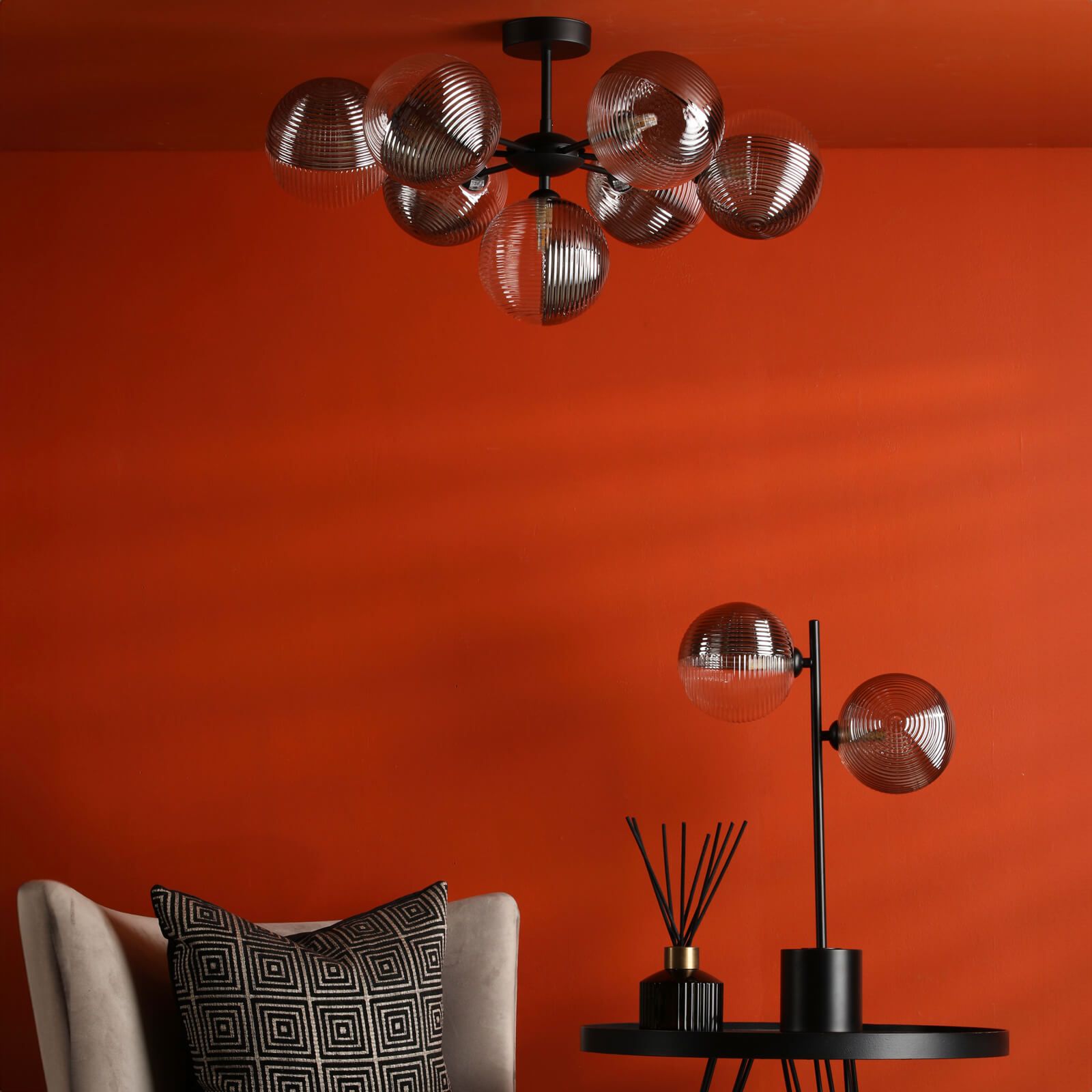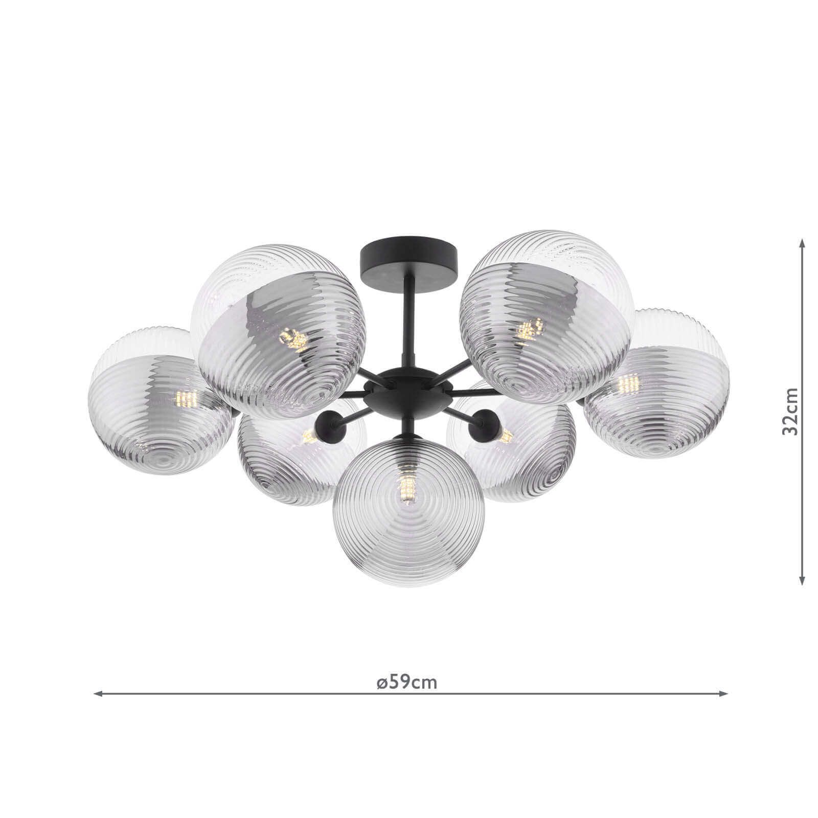 Cohen 7 Light Pendant Matt Black With Smoked/Clear Ribbed Glass