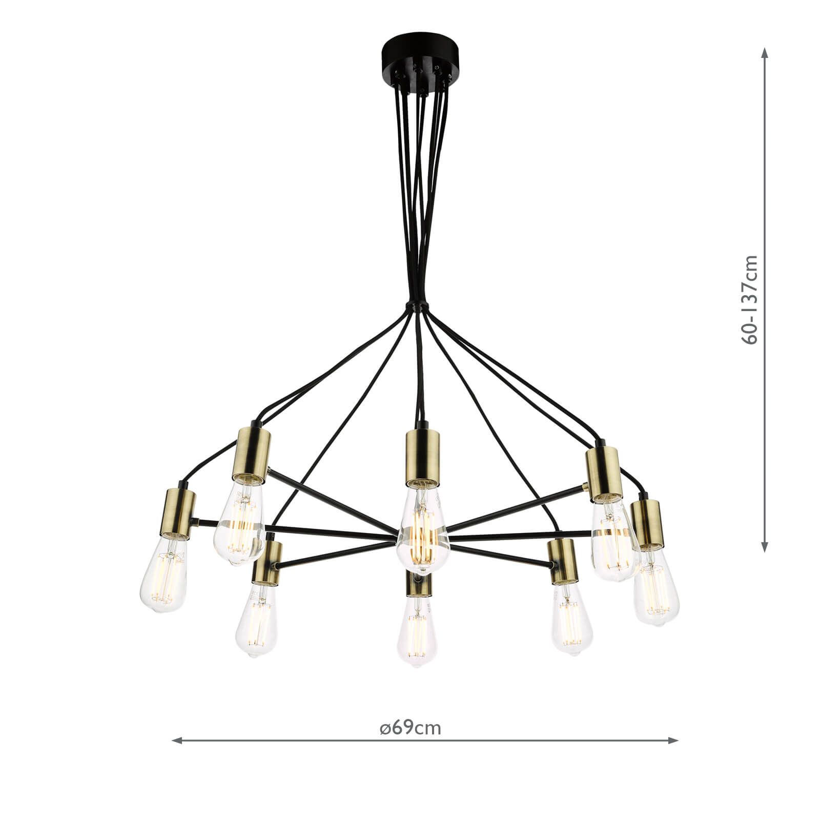 Bulb not included; takes 8 x 40W max ES GLS. We recommend our BUL-E27-RUS-W1 bulb. Click here to shop.