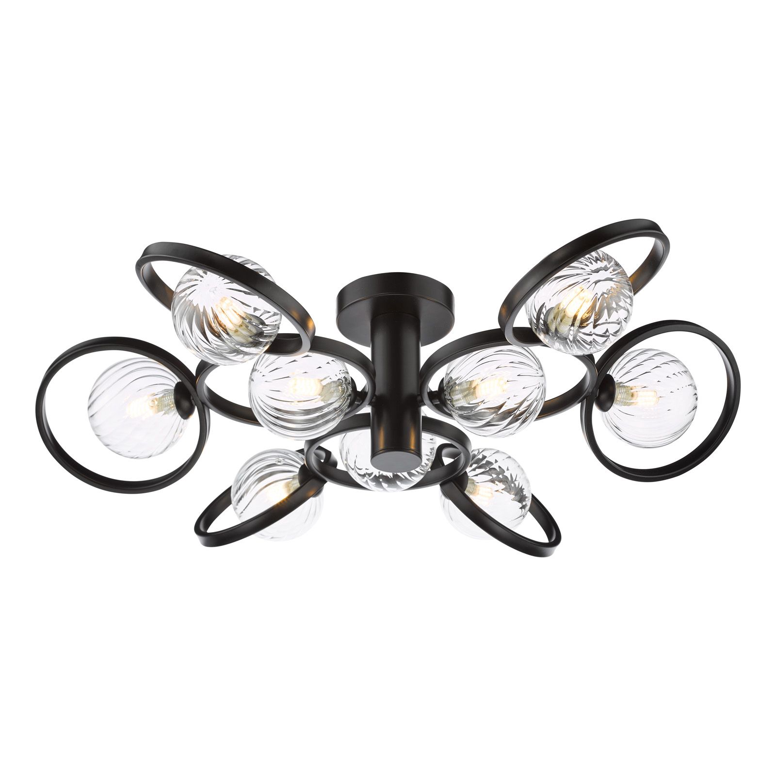 Lynette 9 Light Semi-Flush Satin Black With Twisted Glass