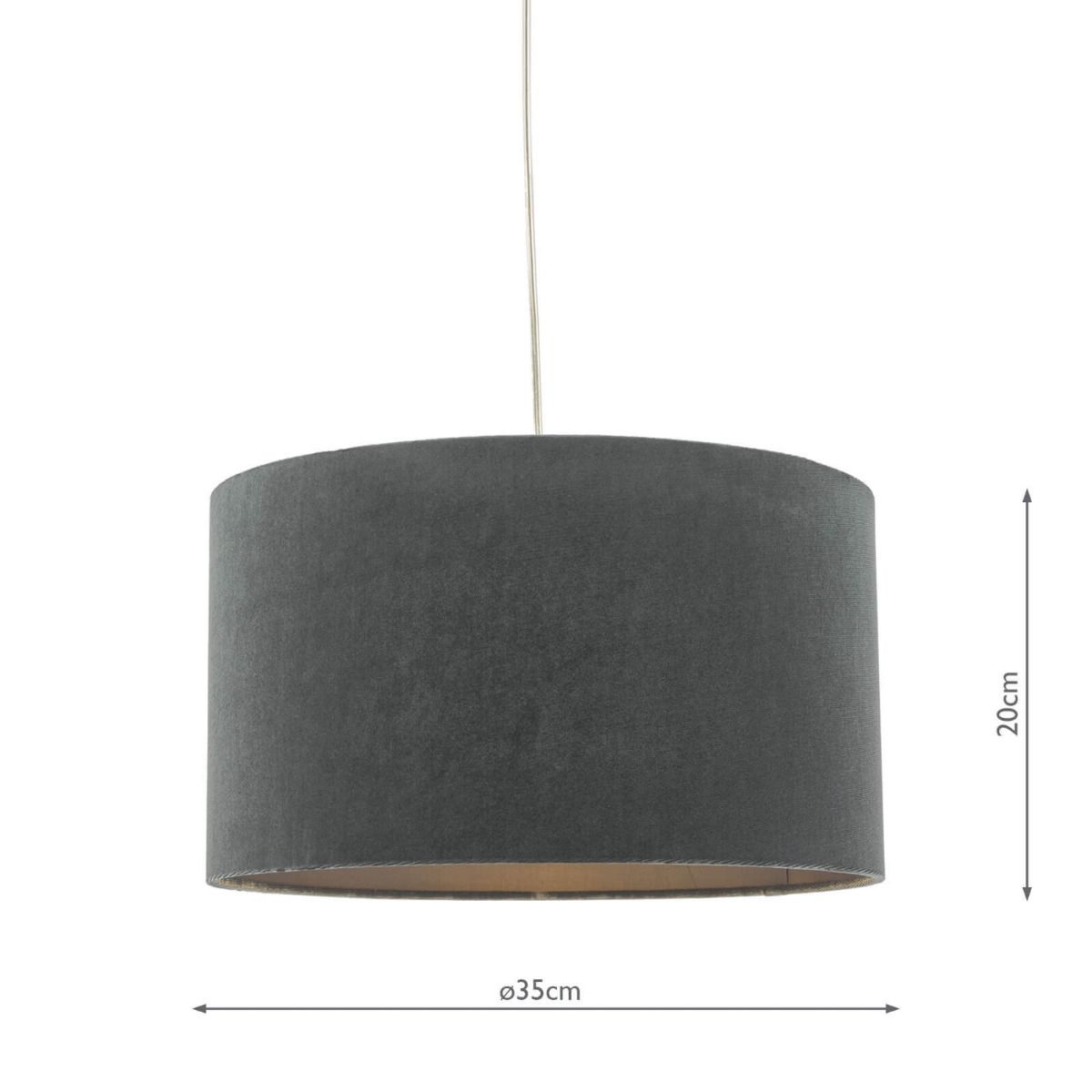 The Akavia easy fit shade boasts a sumptuous grey velvet exterior complemented by a self-colored cotton lining, making it a perfect choice for infusing any space with a touch of luxury.