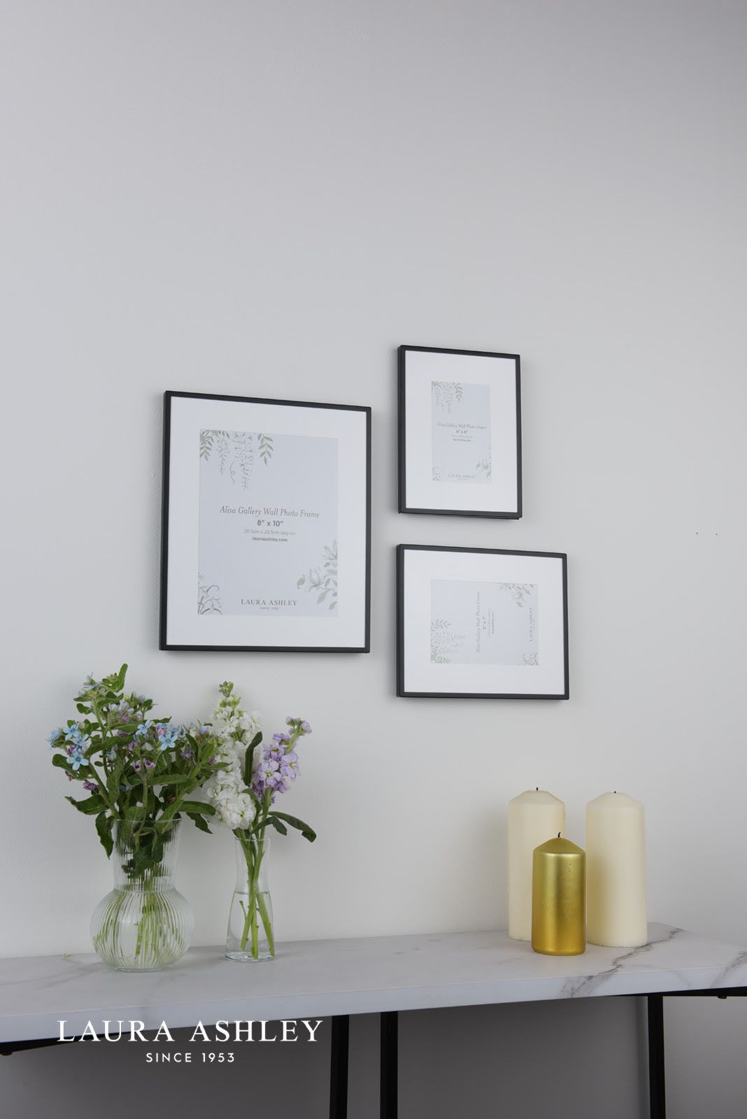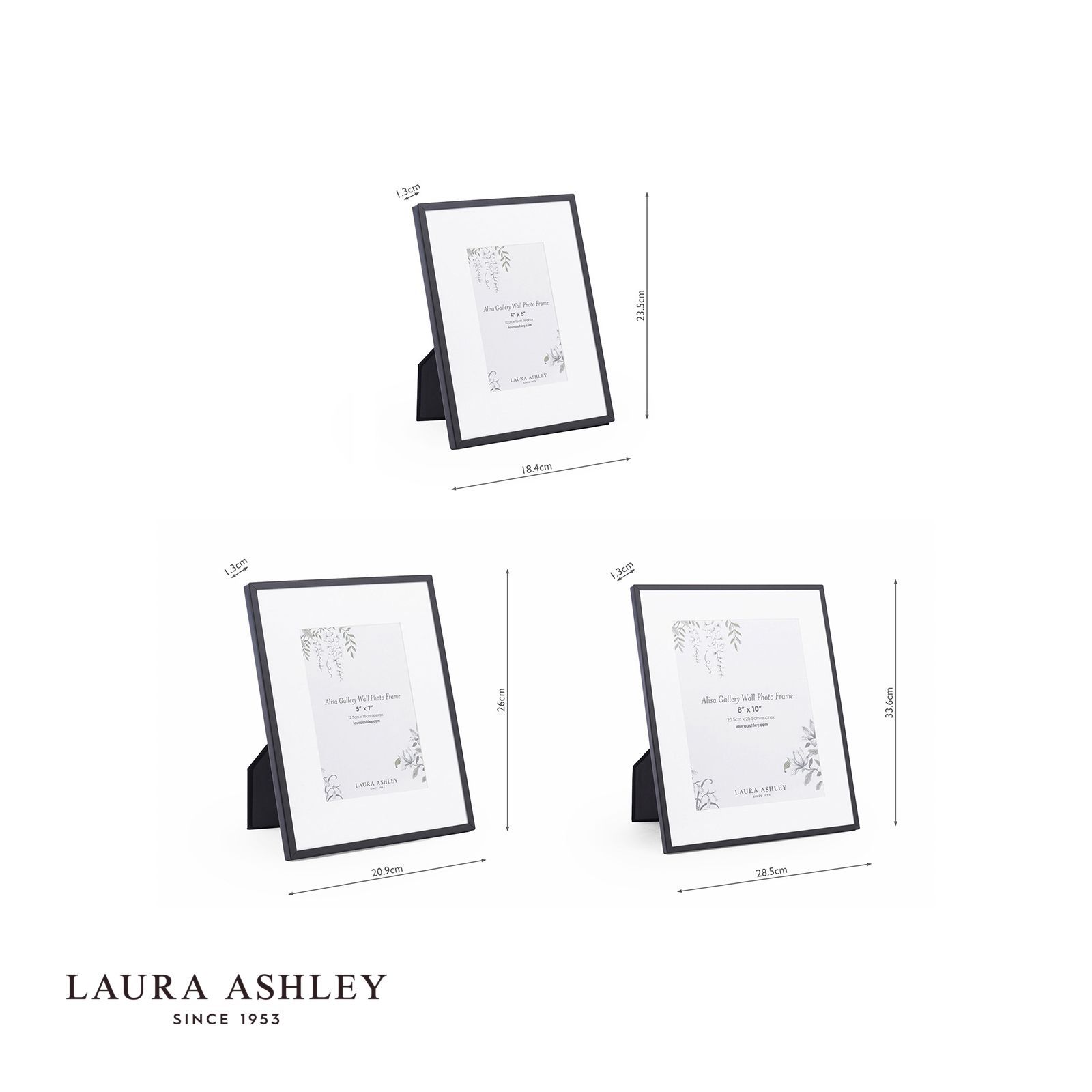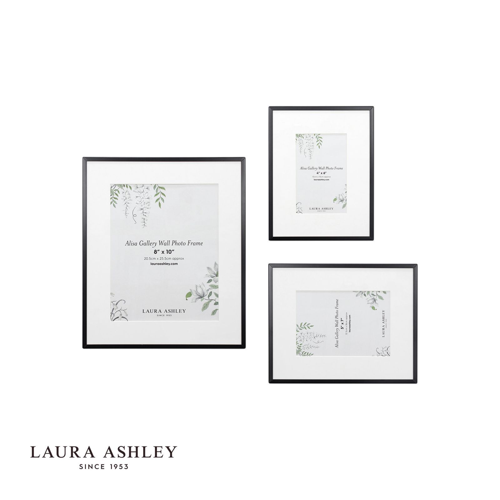 The Alisa photo frame collection by Laura Ashley, finished in a timeless black metal trim, offers a beautifully versatile way to showcase your favourite photographs. Whether arranged on a console or mounted as a curated gallery wall, this set of three frames adds quiet sophistication to every room.
