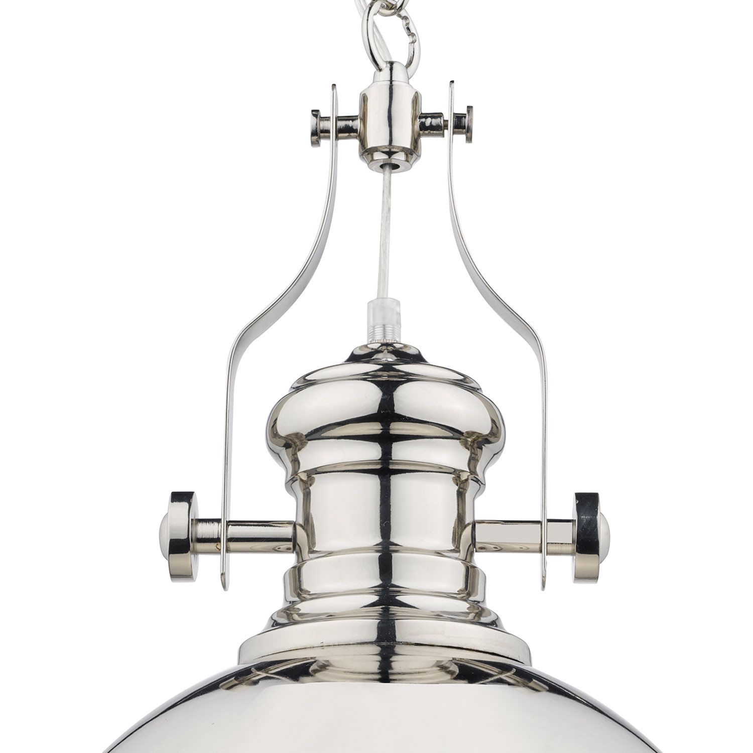 The Arona Pendant has its vintage industrial style brought bang up to date with a highly polished chrome finish. Comes with a glass diffuser, giving a beautiful diffused light.