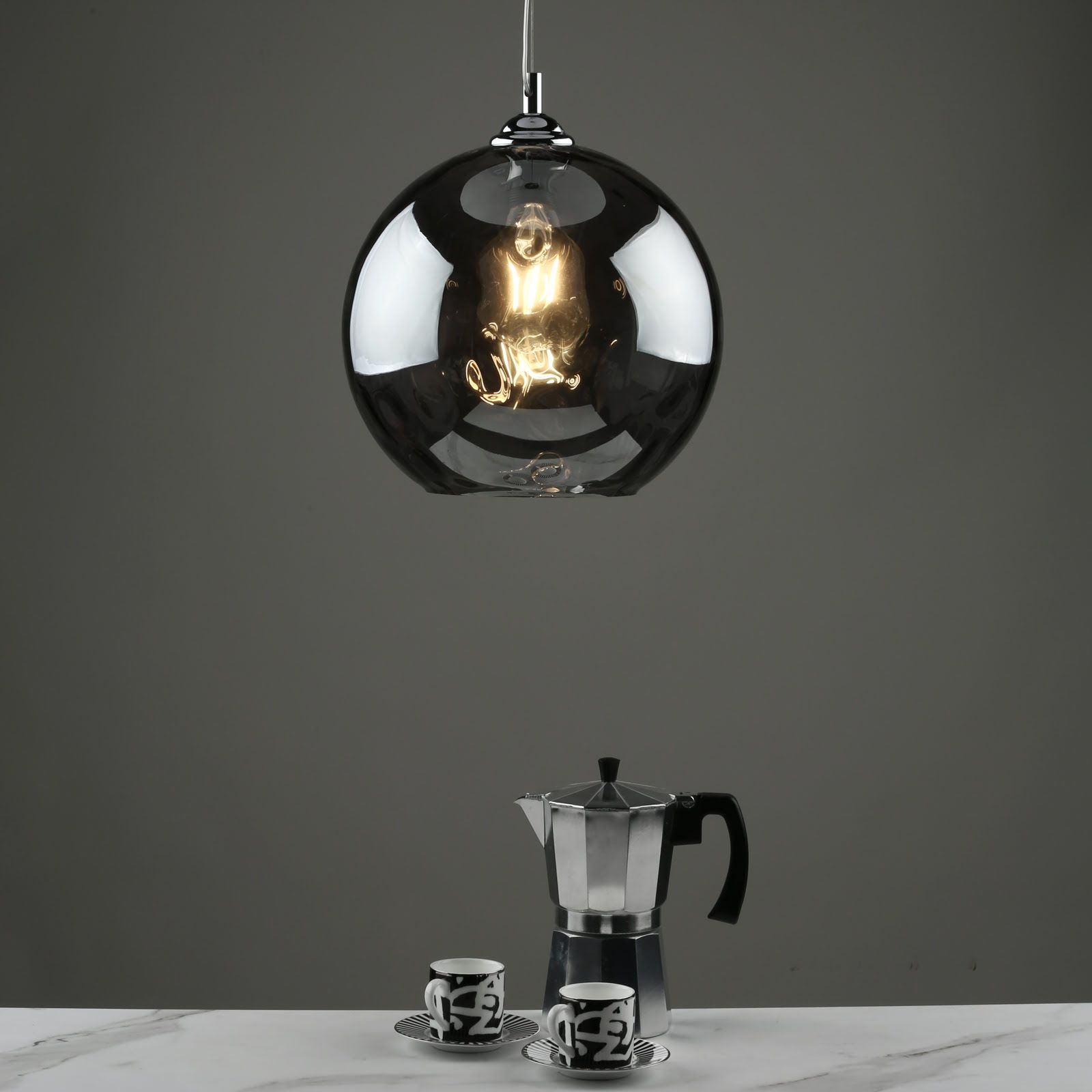 Aulax 1 Light Pendant Silver Smoked Glass With Dimple Effect