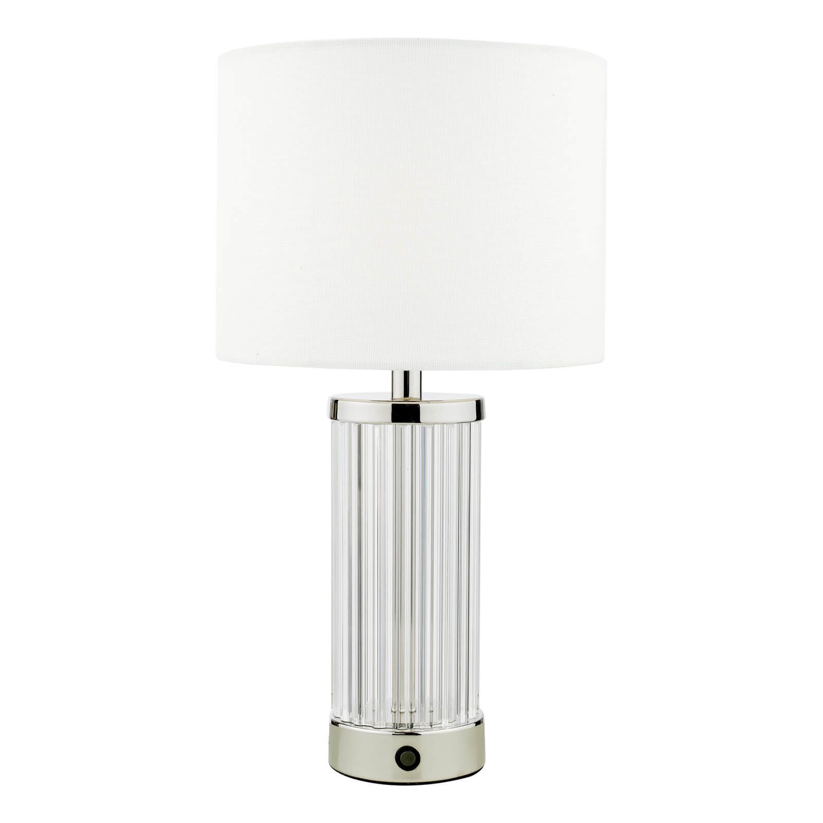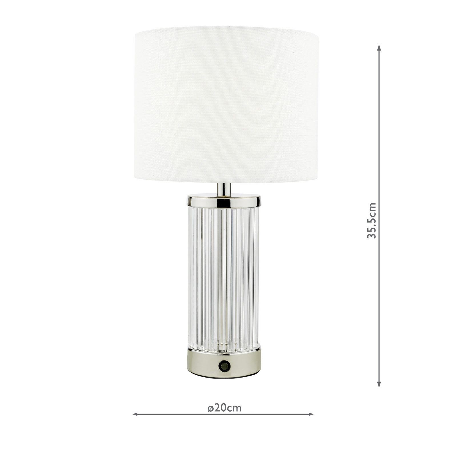 Enrico Rechargeable Table Lamp Polished Nickel and Glass With Shade LED