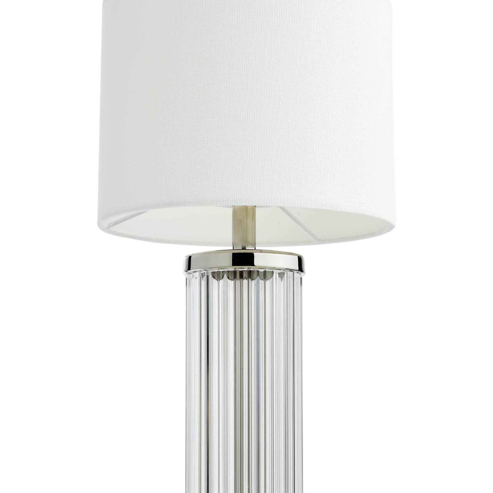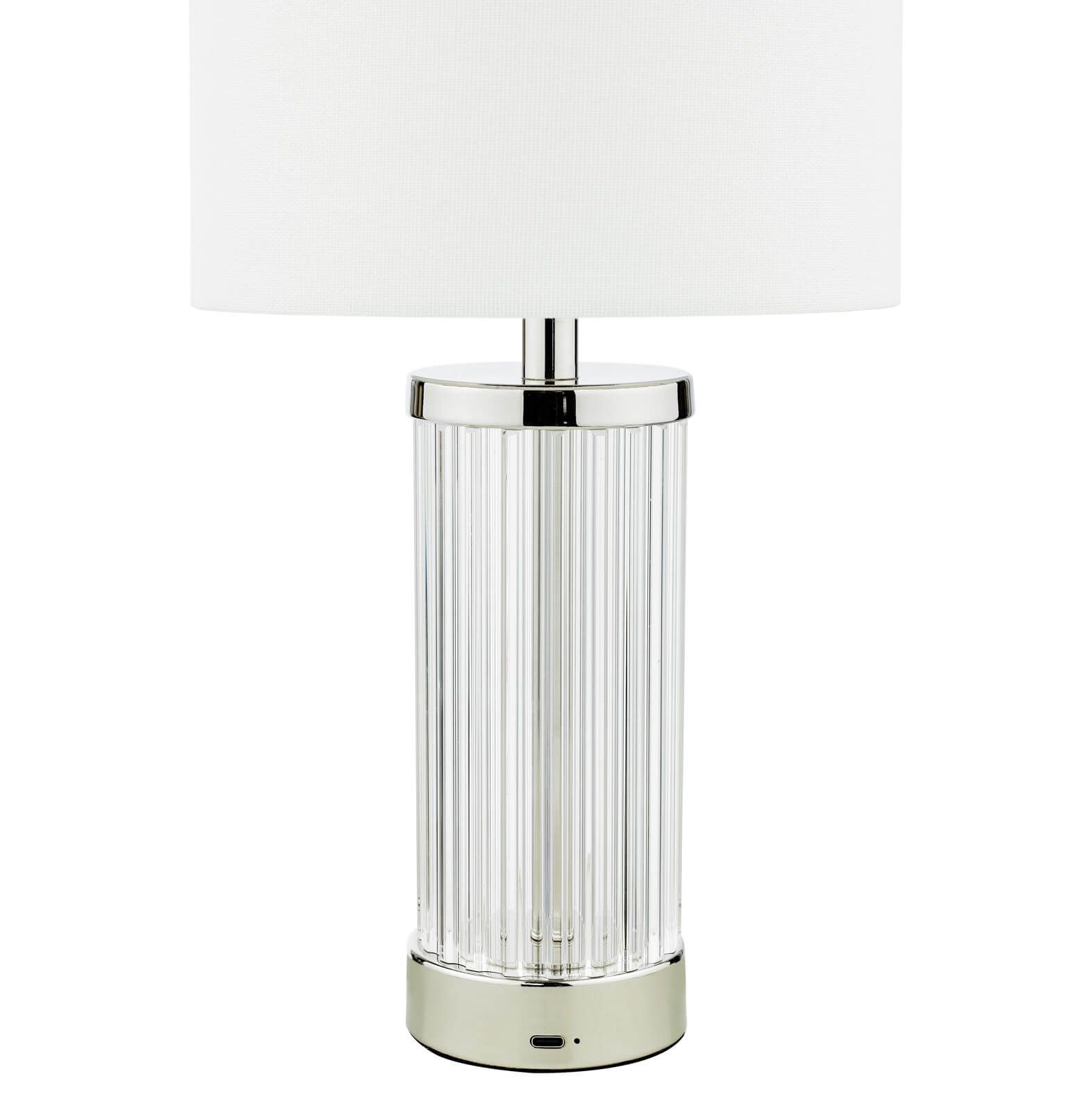 The Enrico Table Lamp - a classic piece that will elevate any space. The sleek polished nickel finish and ribbed glass base create a stylish and timeless look that makes it a perfect addition to various decor schemes. The addition of a white linen shade provides a soft and subtle contrast, which complements the overall design beautifully. This table lamp is not only stylish but also practical, as it's a portable, rechargeable LED lamp, so you won't be limited to a nearby electrical outlet. The LED bulb boasts a warm 3000k light temperature, perfect for creating a bright and inviting atmosphere. The 3-stage touch operation adds an extra layer of convenience, allowing you to customize the light output to your liking. Whether you use this lamp as a bedside table lamp or in your living room, the Enrico Table Lamp is an excellent choice for illuminating your decor with style and class.