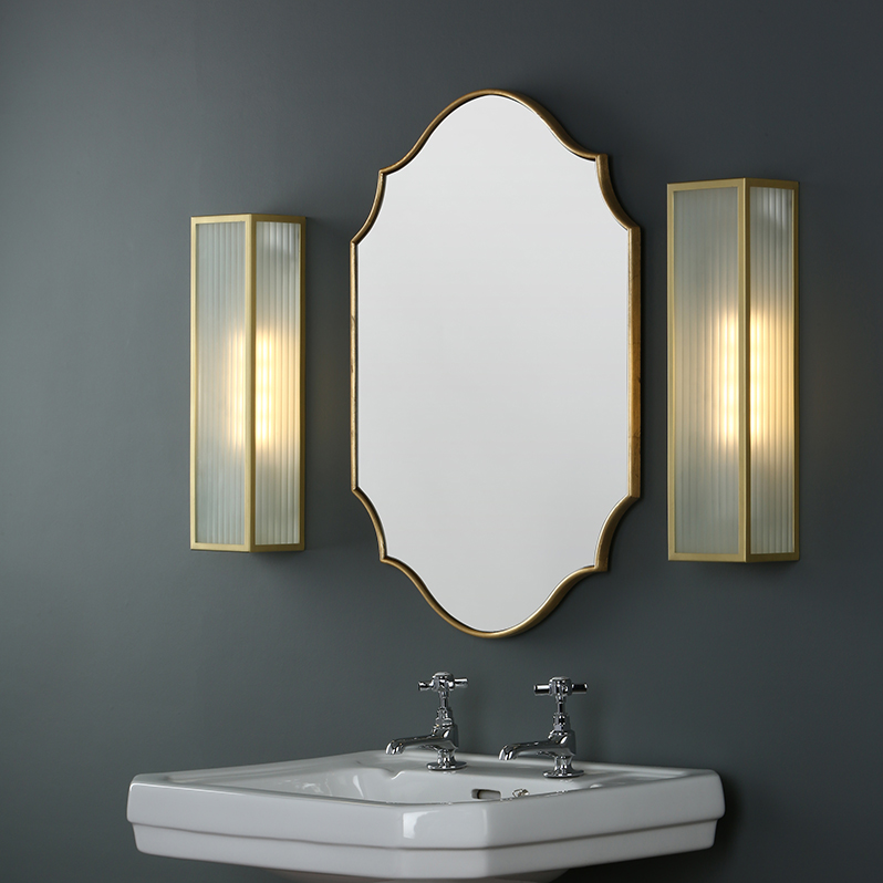At the mirror, an overhead light from behind can be quite difficult when trying to do tasks such as shaving or applying make-up. A pair of wall lights either side of a mirror are a great solution that also provides a bit of a feeling of glamour. Here we make the most of the vertical box shape of the Keegan wall lights in a soft, satin brass; from our outdoor range, they are also eminently suited for the steamy atmosphere of a bathroom.