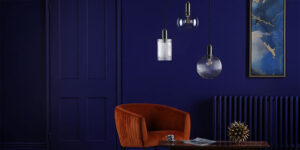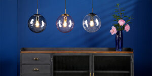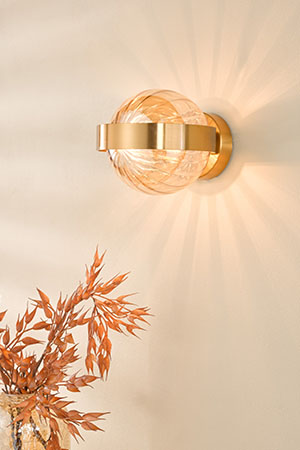 Opt for lighting that plays with these hues, either through tinted glass, metallic finishes, or coloured LED bulbs.