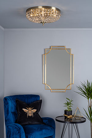 Tinted glass shades and brass details can reflect festive colours beautifully, especially when paired with jewel-toned cushions and metallic accessories for a cohesive, regal look.