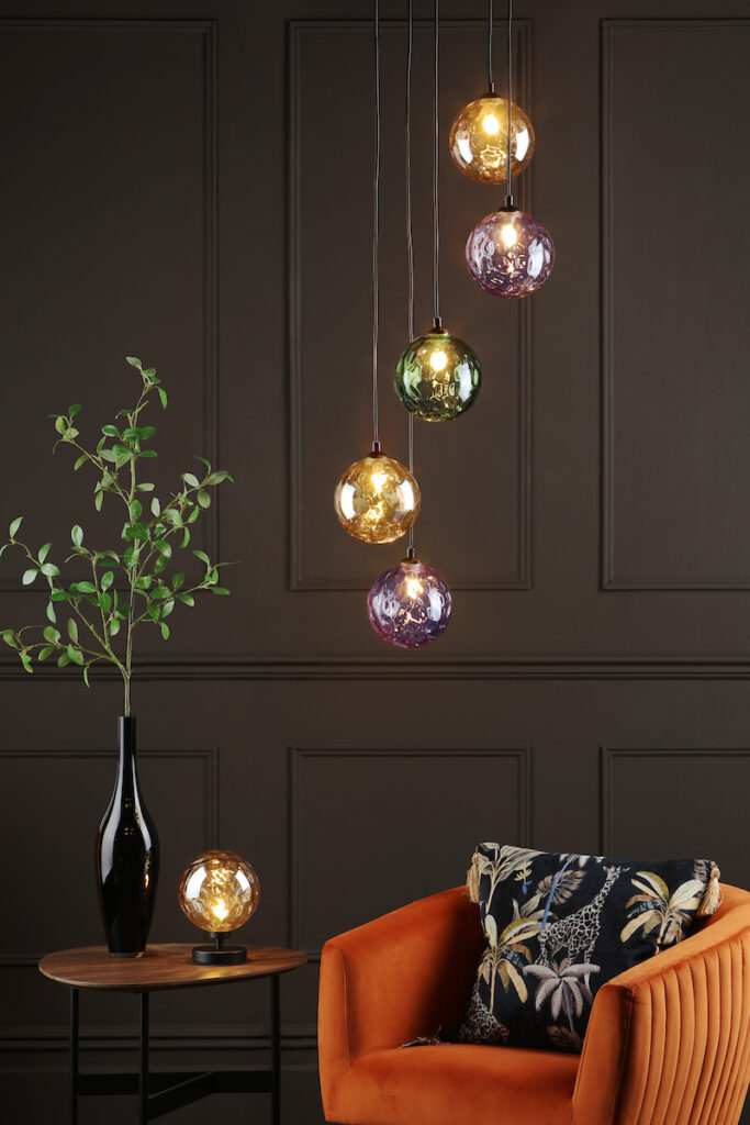 Cluster pendants have been big news for a while, and adding the sizeable colourful glass to our Elpis pendant, shown here, brings another fun dimension. Mix the colours of the glass up or keep it simple with just one or two colours. In contrast, the oversized smoked glass on the Federico adds a moody depth to the classic polished chrome metalwork.