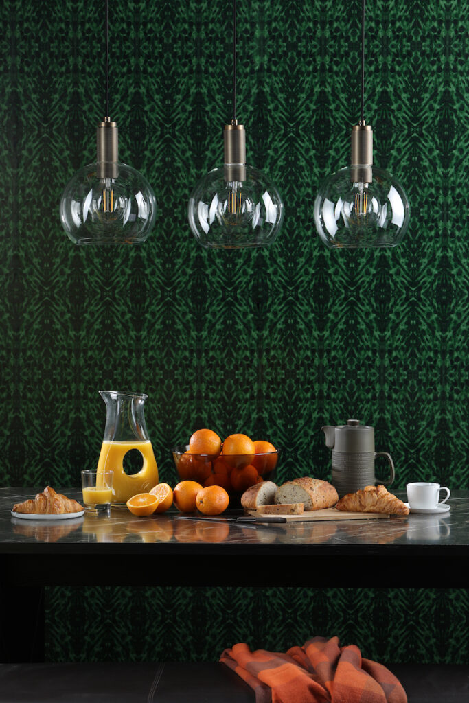 Presenting Nikolas a 1lt knurled metal single suspension in either natural brass or black nickel. These are incredibly smart pendant suspensions and would be perfect in a refined, industrial kitchen. Nikolas is shown here in natural brass with clear, round glass. We feel this would look stunning over a breakfast bar or kitchen island in a linear arrangement.