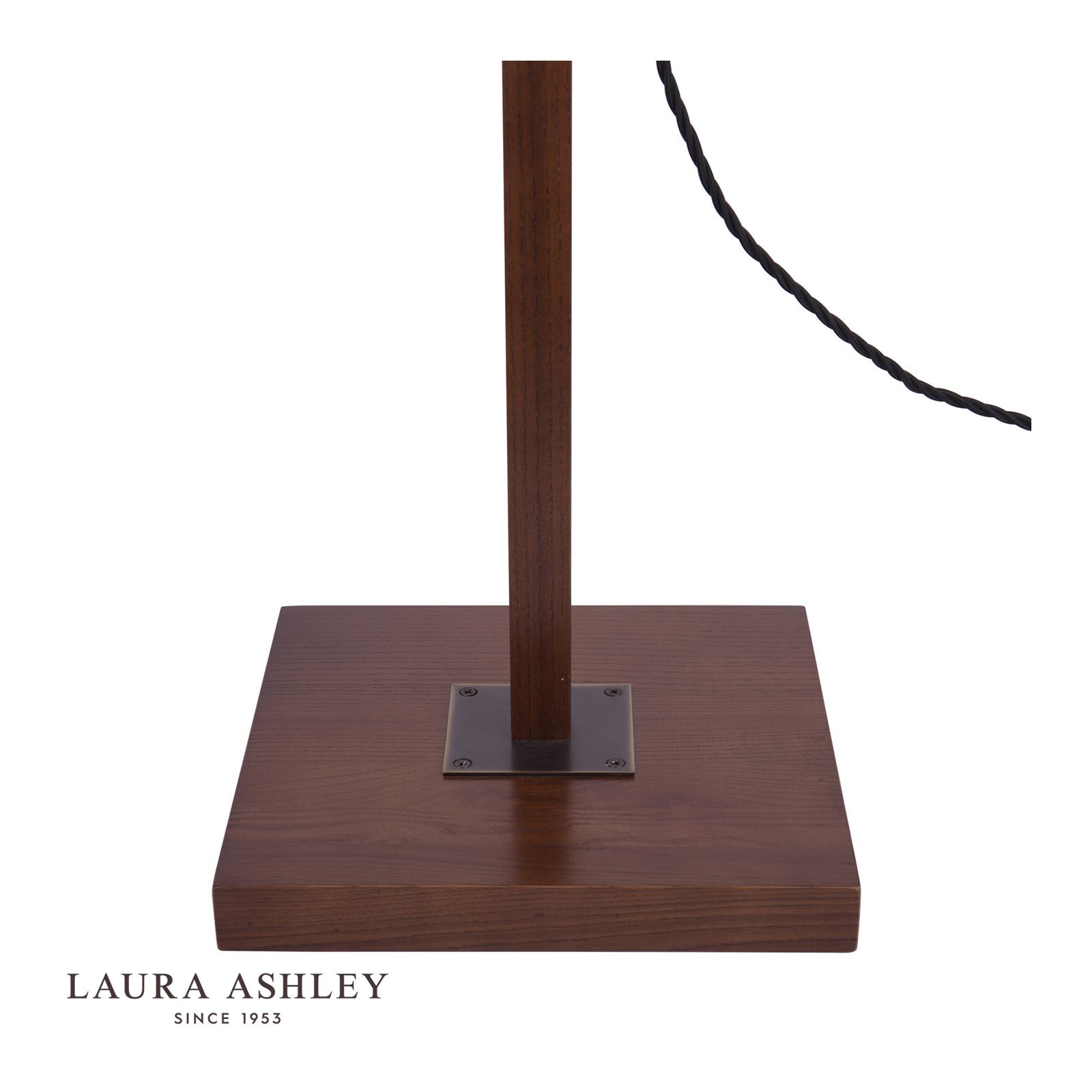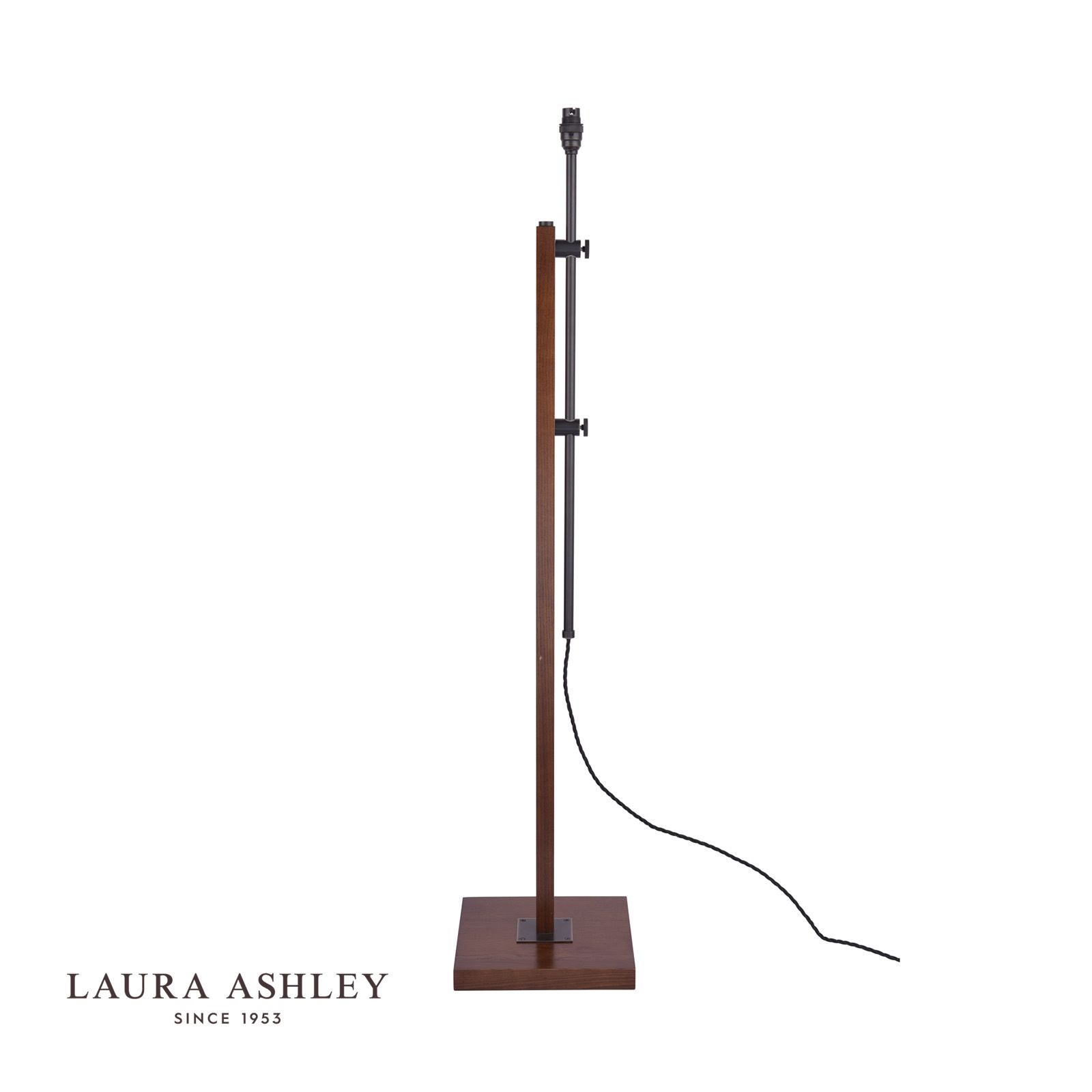 The Burdale Floor Lamp by Laura Ashley is classic style floor light, the hand-finished design will elevate your space. Made of ash wood, with a square base, and a dark stain to match our Dark Chestnut Garrat furniture range. This lamp has a antique brass metal details and an adjustable height. Base only; we recommend a 40cm shade – for a timeless look, why not try the Laura Ashley Fenn Silk shade or, for a contemporary look, try the Bacall Linen shade? This product has a twisted cable with a convenient push-bar switch.Bulb not included; takes 1 x 60W max BC GLS.
