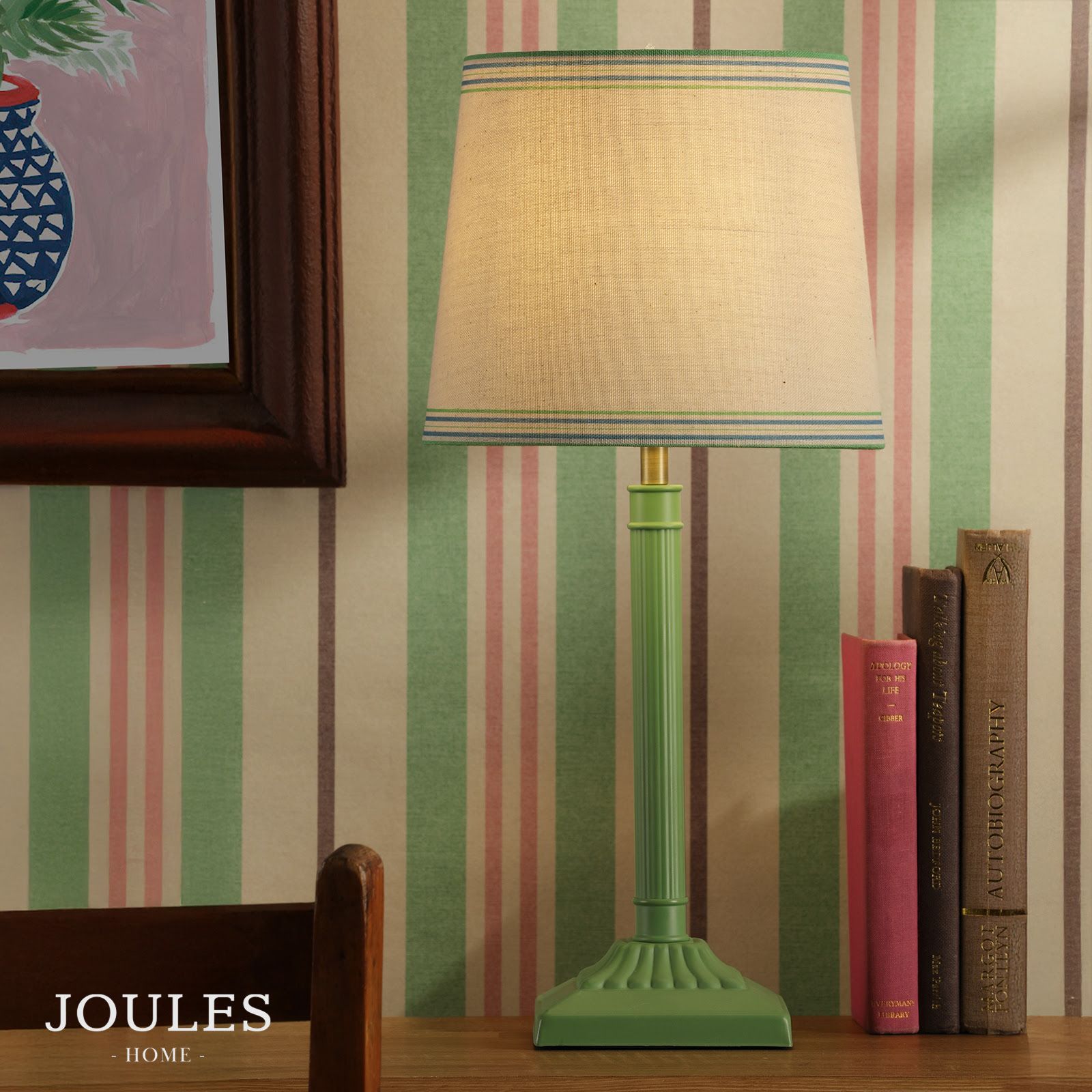 Joules Buscot Table Lamp Matt Green and Matt Antique Brass With Shade