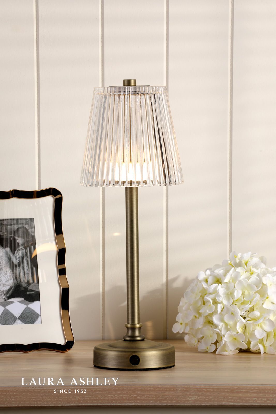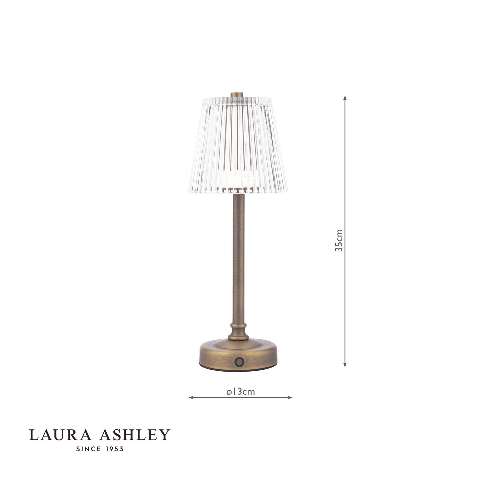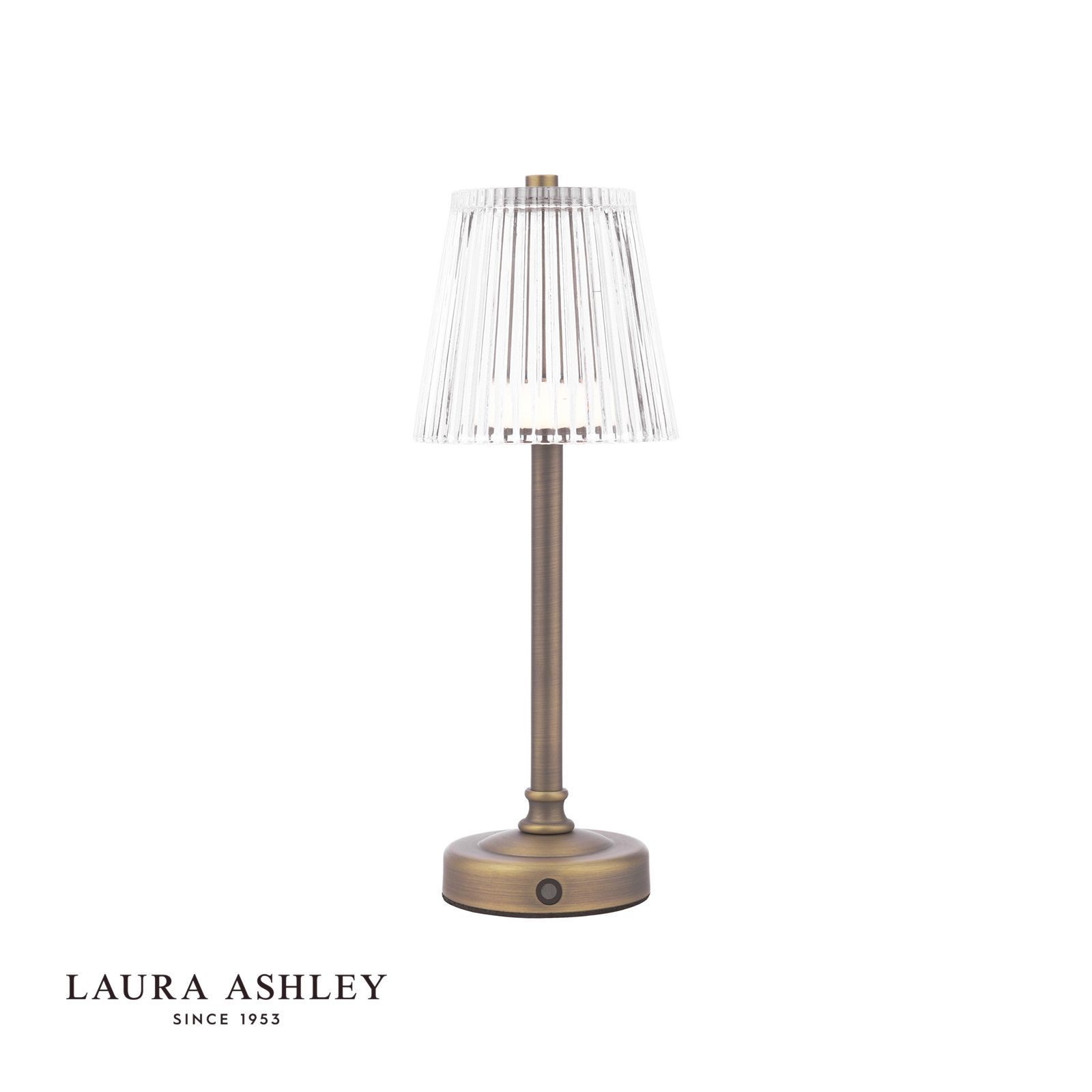 Laura Ashley Callaghan Rechargeable Table Lamp Matt Antique Brass and Ribbed Glass LED