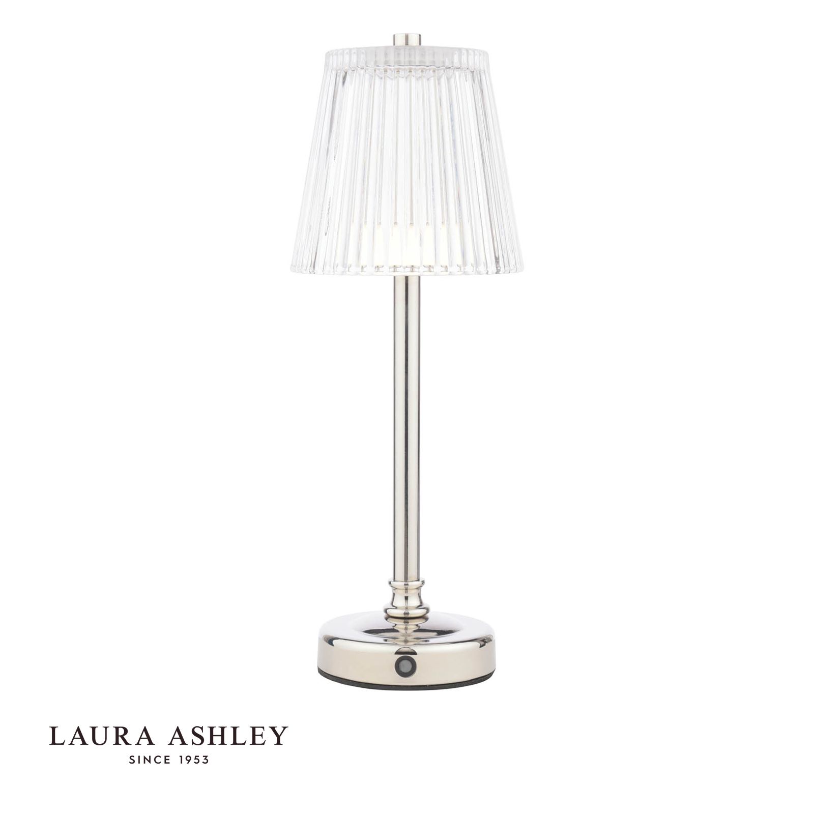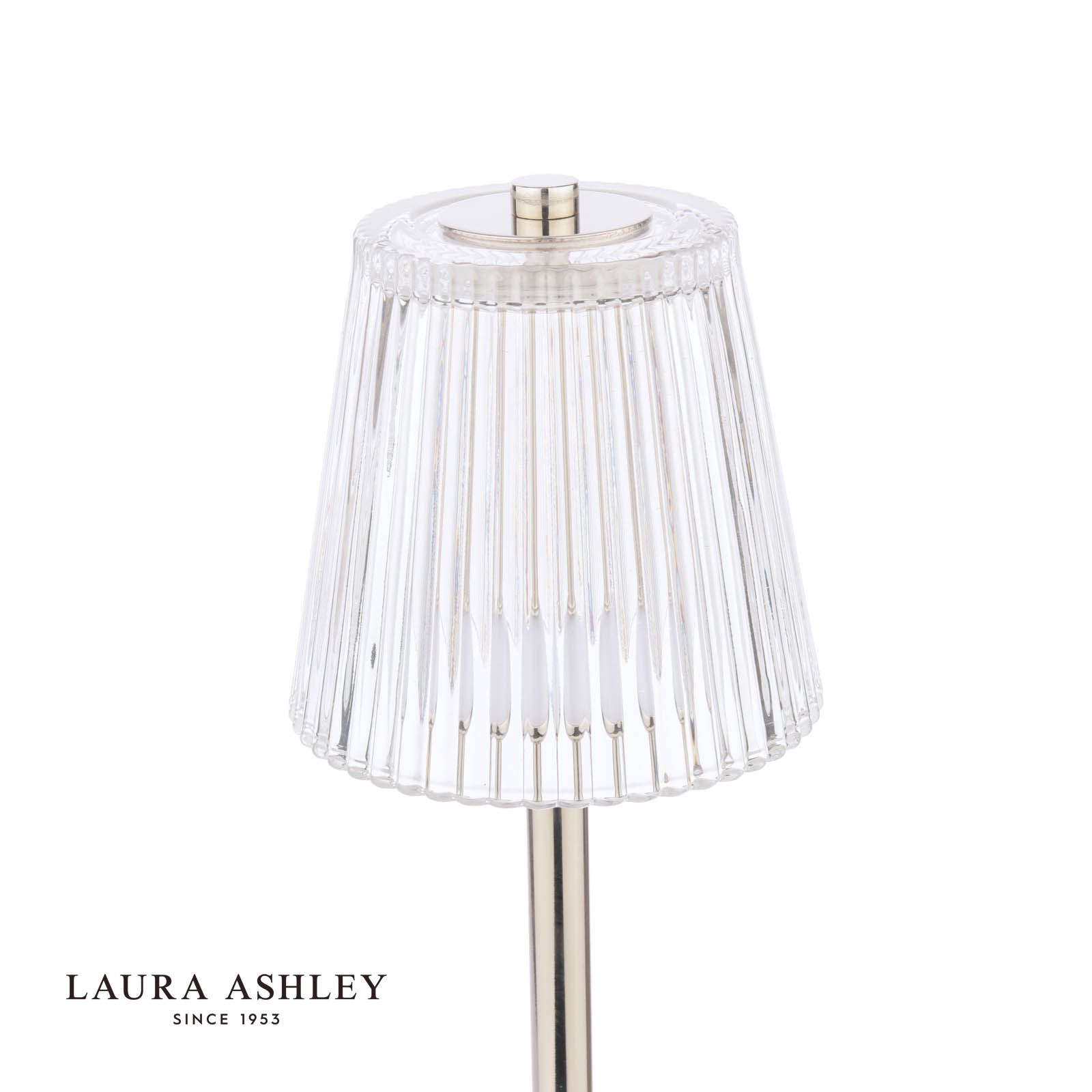 Laura Ashley Callaghan Rechargeable Table Lamp Polished Nickel and Ribbed Glass LED