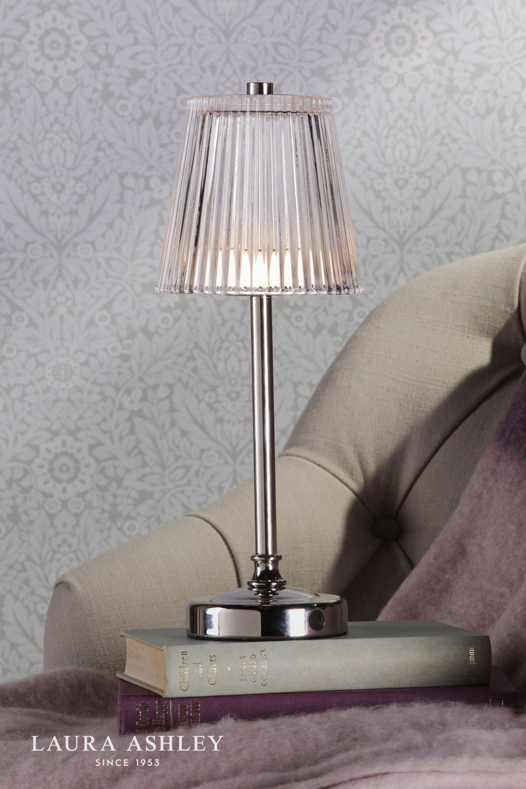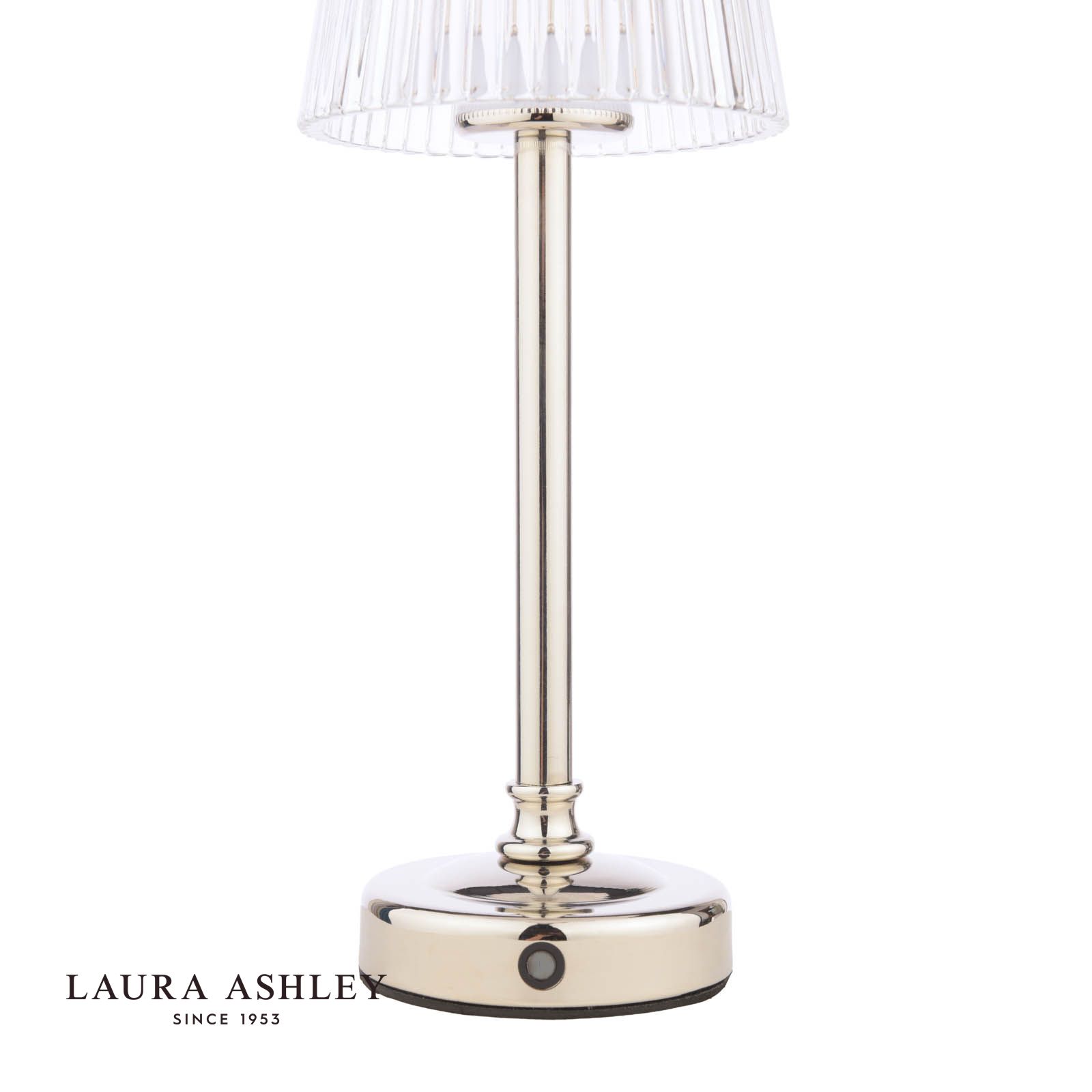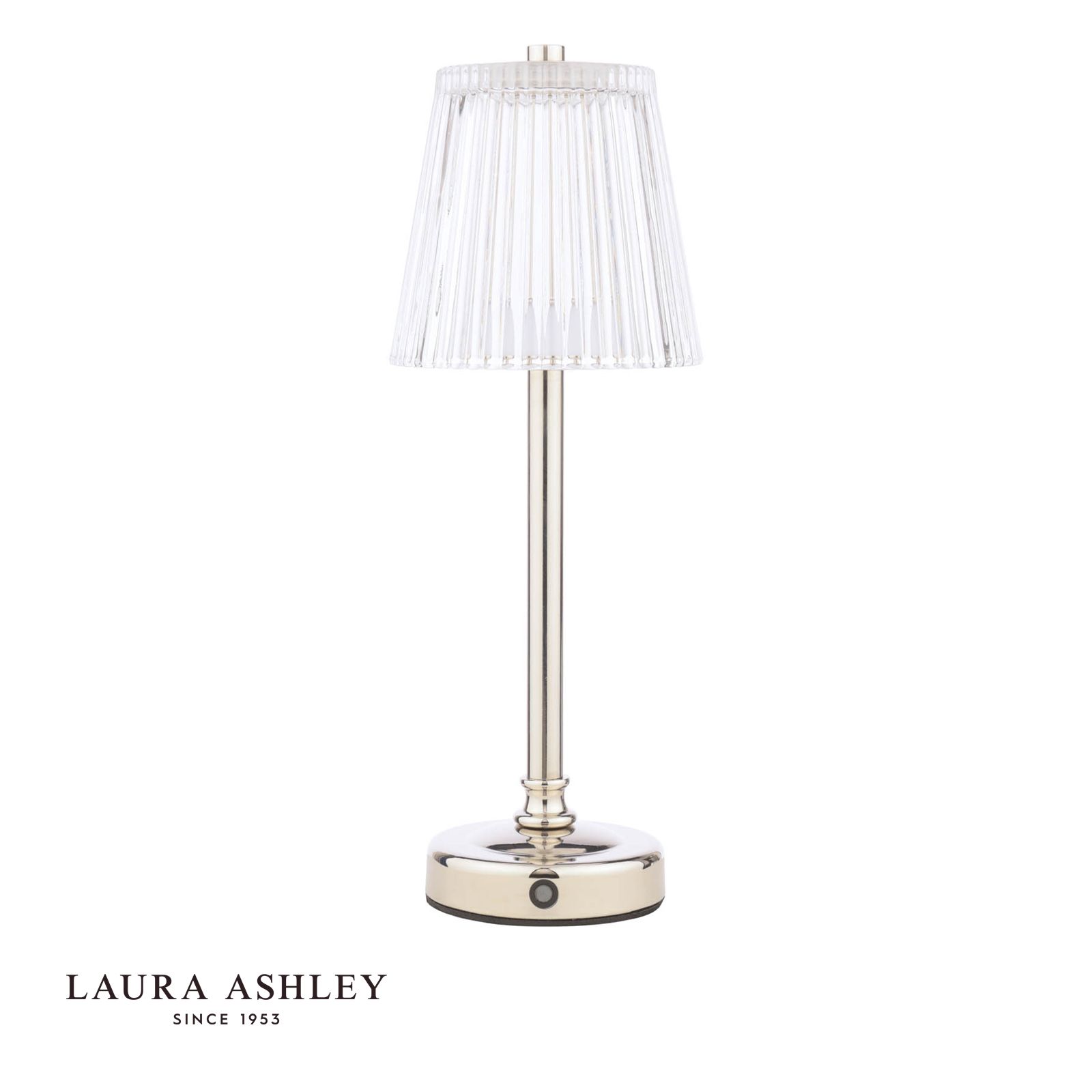 Brighten up any room with the Callaghan rechargeable table lamp from Laura Ashley. This fashionable lighting solution blends classic and contemporary elements for a chic look that complements any decor. The Laura Ashley rechargeable table lamp features a sleek polished nickel base topped with an elegant glass shade-illuminating your space with a warm, inviting glow. Thanks to its cordless rechargeable design, you can easily place this lamp on a bedside table, console, or anywhere else you need stylish lighting without being tethered to a power outlet. And with its energy-efficient LED bulb, you'll enjoy long-lasting illumination while reducing your environmental impact. Light up your living room, bedroom, or entryway with the modern yet timeless appeal of the Callaghan rechargeable table lamp.