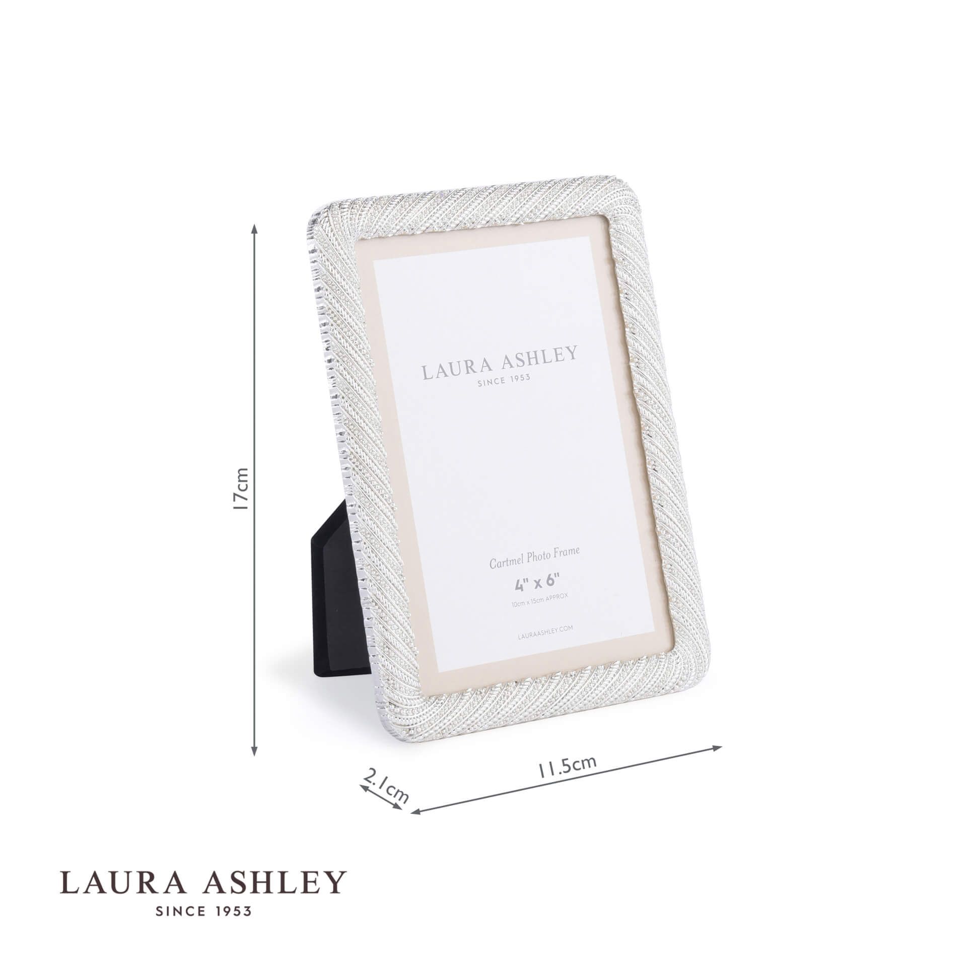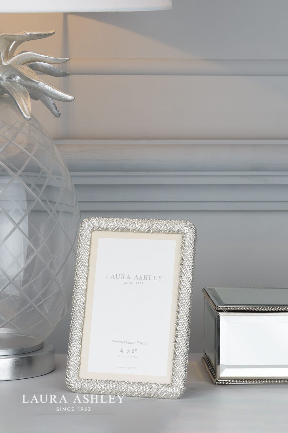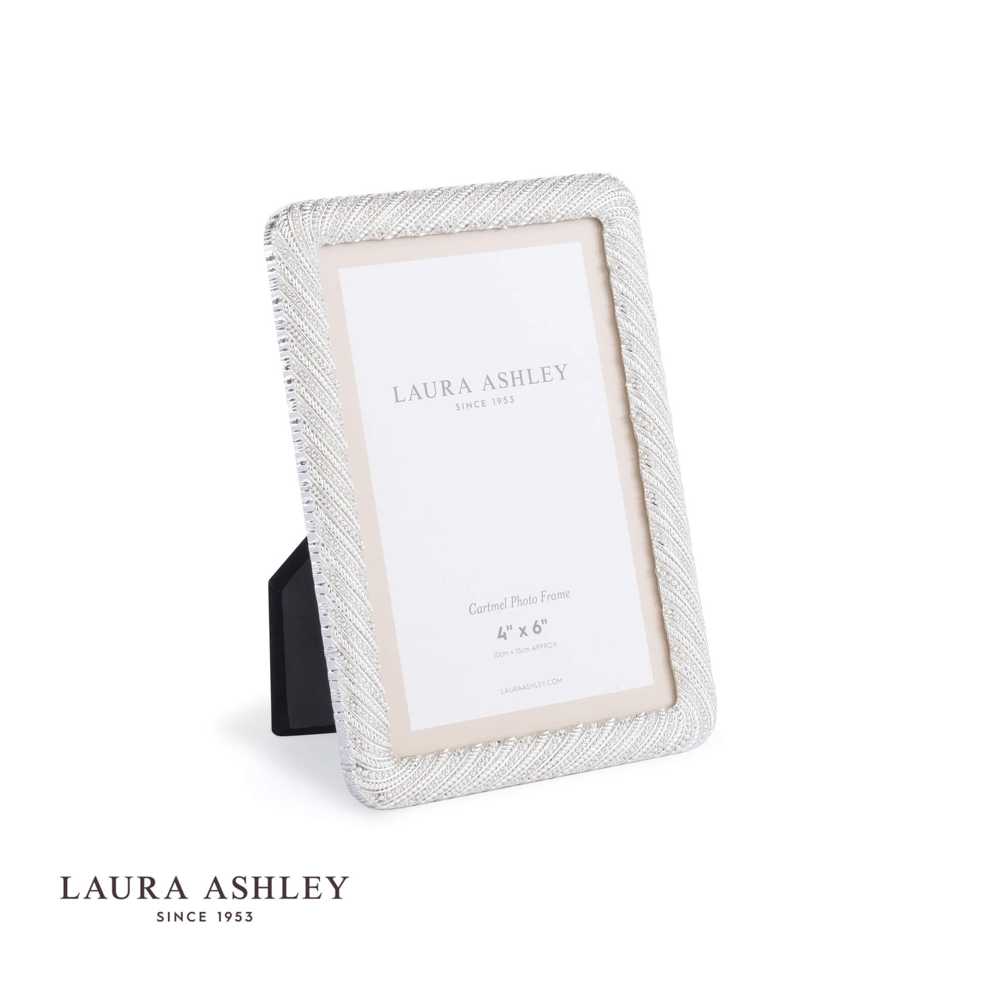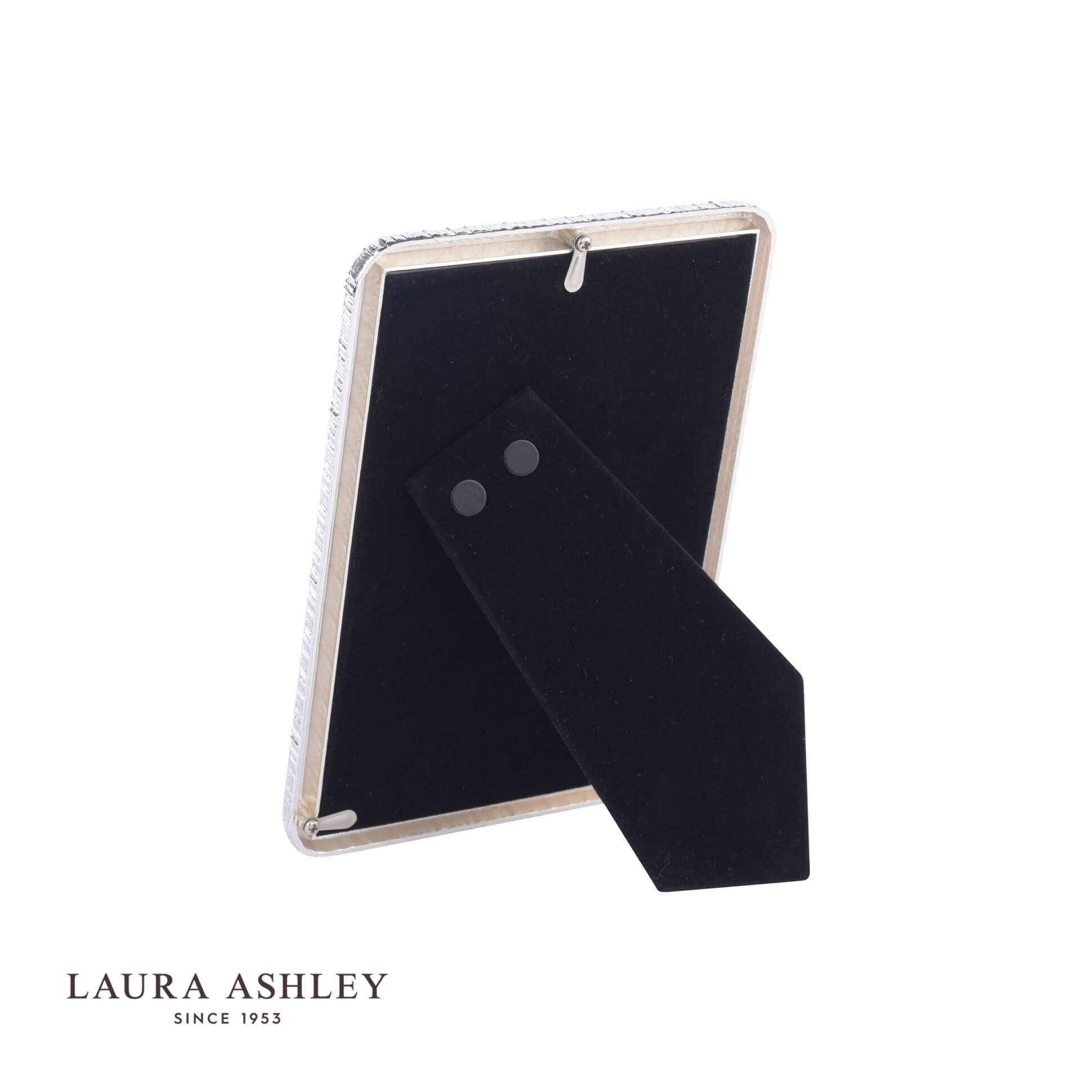 With a shiny, silver-plated metal frame, wound with tightly packed curving rows of tiny beads, the decorative round-cornered Cromer photograph frame from Laura Ashley is a lovely home for images of your favourite people. Holds one photo. Free standing, for both portrait or landscape orientation. Silver-plated metal frame, glass fronted, with a black velvet backing.