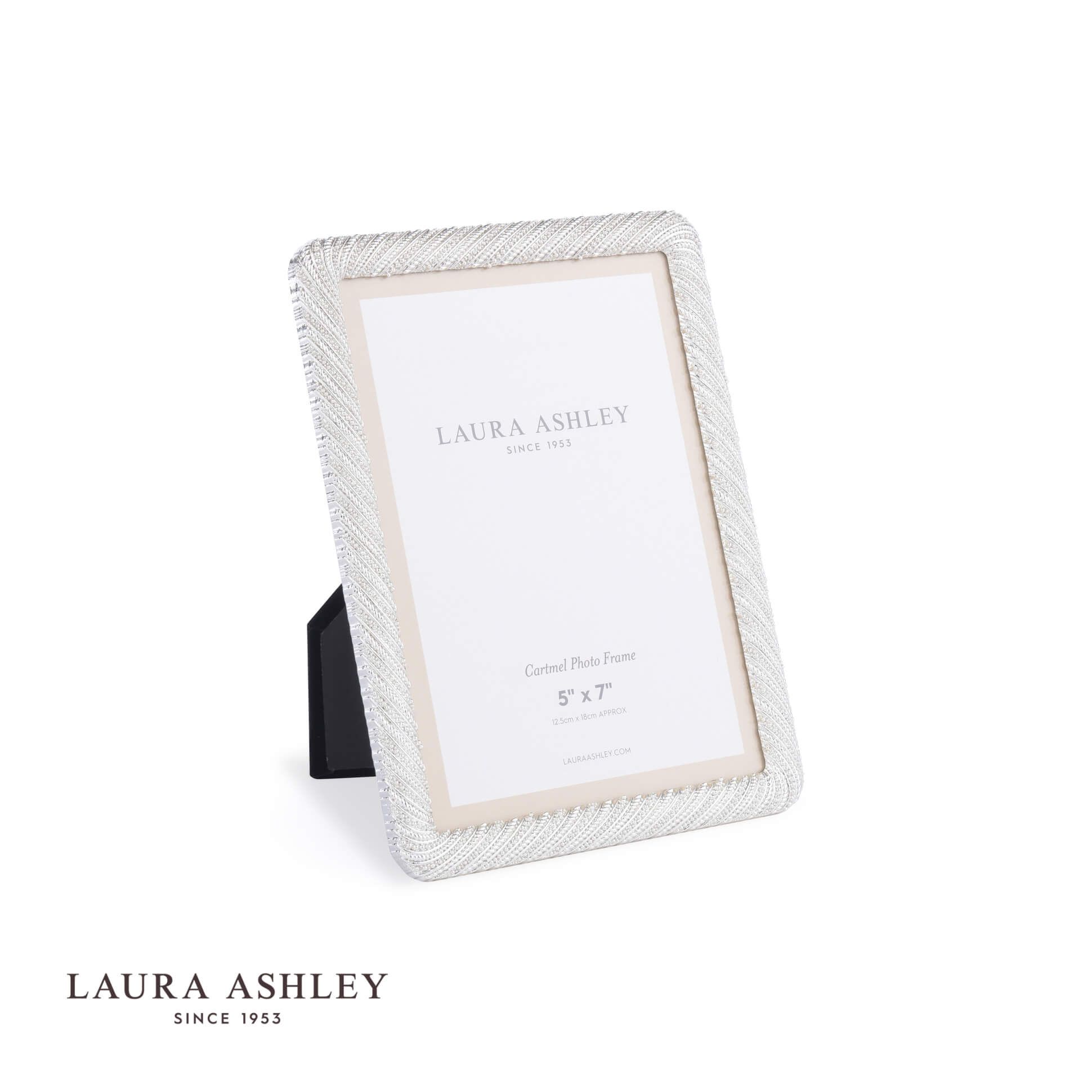 With a shiny, silver-plated metal frame, wound with tightly packed curving rows of tiny beads, the decorative round-cornered Cromer photograph frame from Laura Ashley is a lovely home for images of your favourite people. Holds one photo. Free standing, for both portrait or landscape orientation. Silver-plated metal frame, glass fronted, with a black velvet backing.