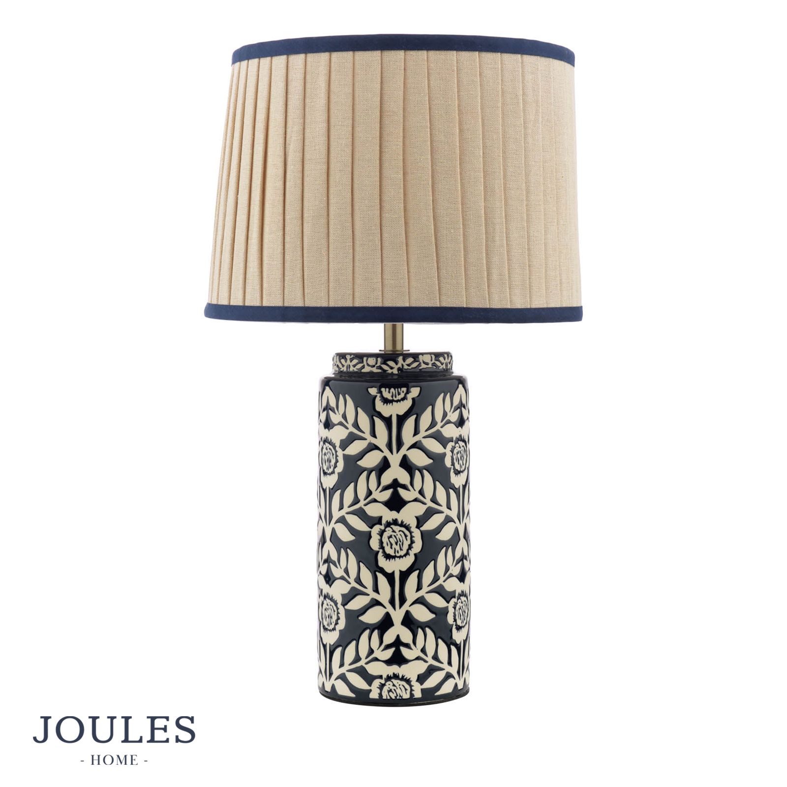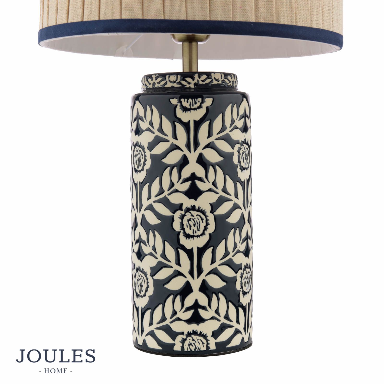 Joules Highclere Table Lamp Blue Ceramic and Antique Brass With Shade