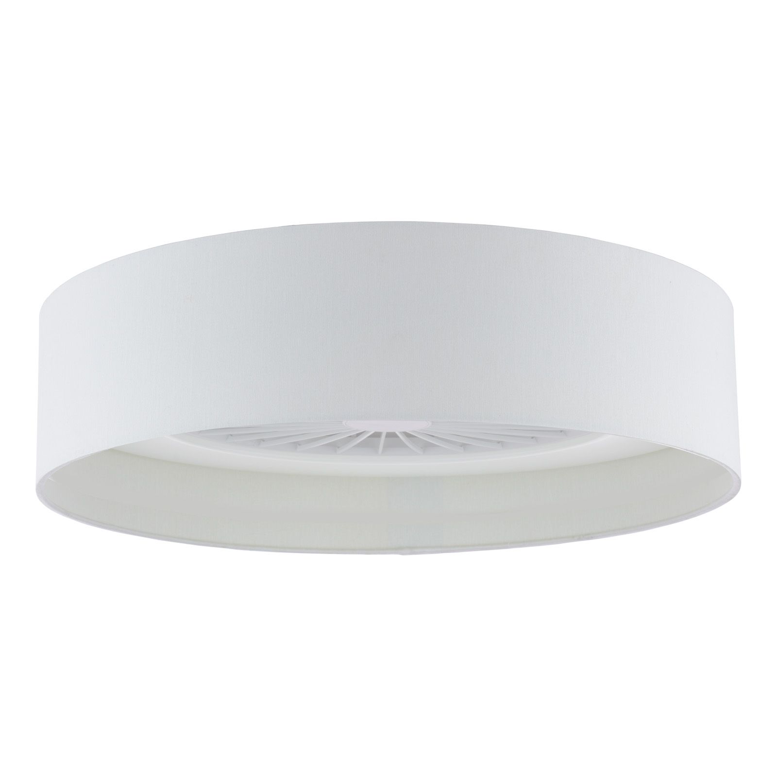 The Fan Flush ceiling light, complete with a smooth white faux silk shade, combines bright, efficient illumination with discreet air circulation in one sleek design. Crafted from white acrylic with an opaque diffuser, it delivers 4360 lumens from just 40W, providing even light coverage for kitchens, workspaces, corridors, or reception areas. Fitted with an integral fan powered by a 15W motor, it offers air velocity up to 1.7m/sec with a quiet output of 30dB on low and 55dB on high. A slim remote control ensures effortless operation with timer and function settings. Pair with a compatible shade to transform it into a stylish centrepiece for living rooms, dining rooms, or bedrooms. With a flush profile for low ceilings, 30,000-hour LED lifespan, and 15,000 switching cycles, the Fan Flush delivers performance and practicality in a modern, unobtrusive form.