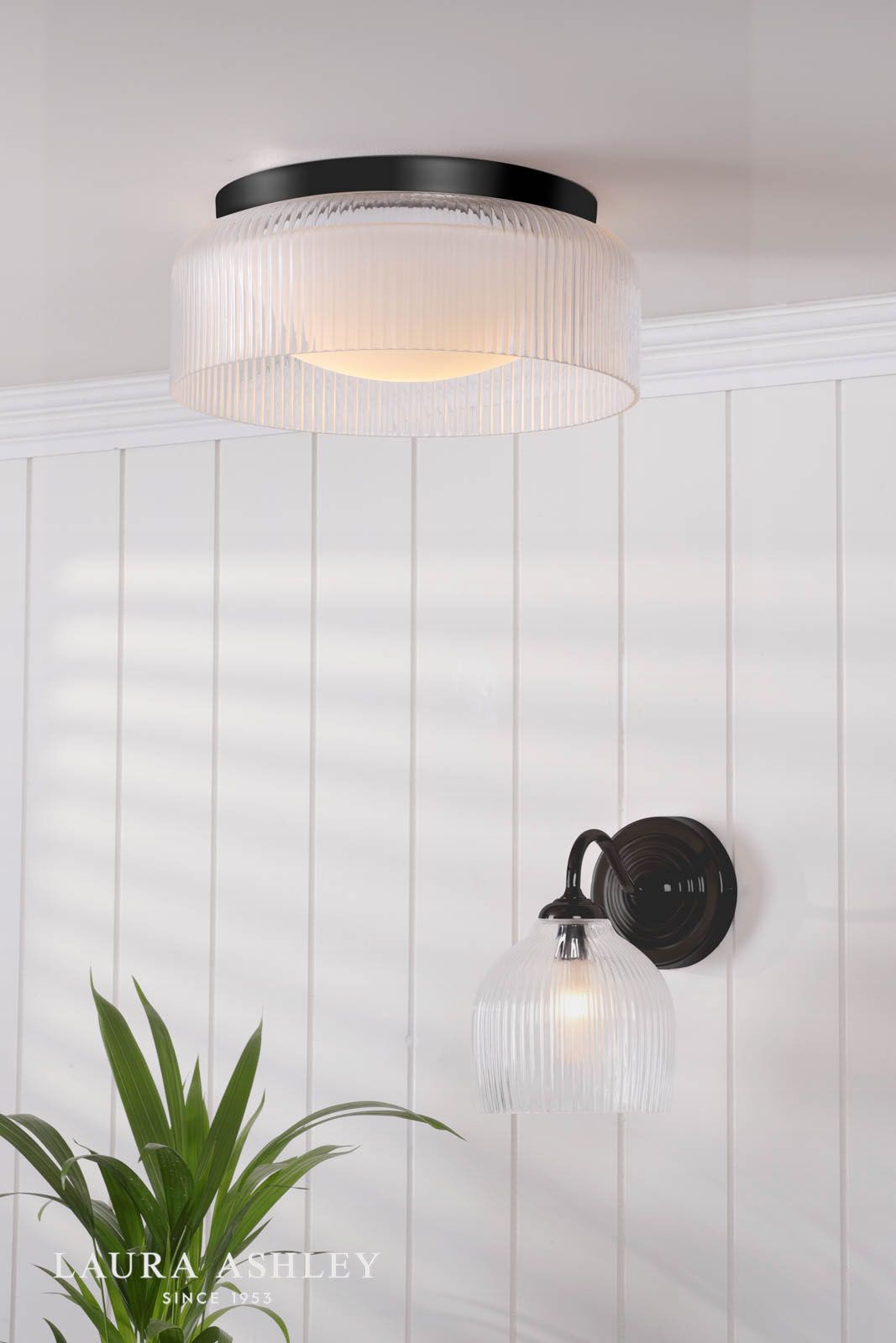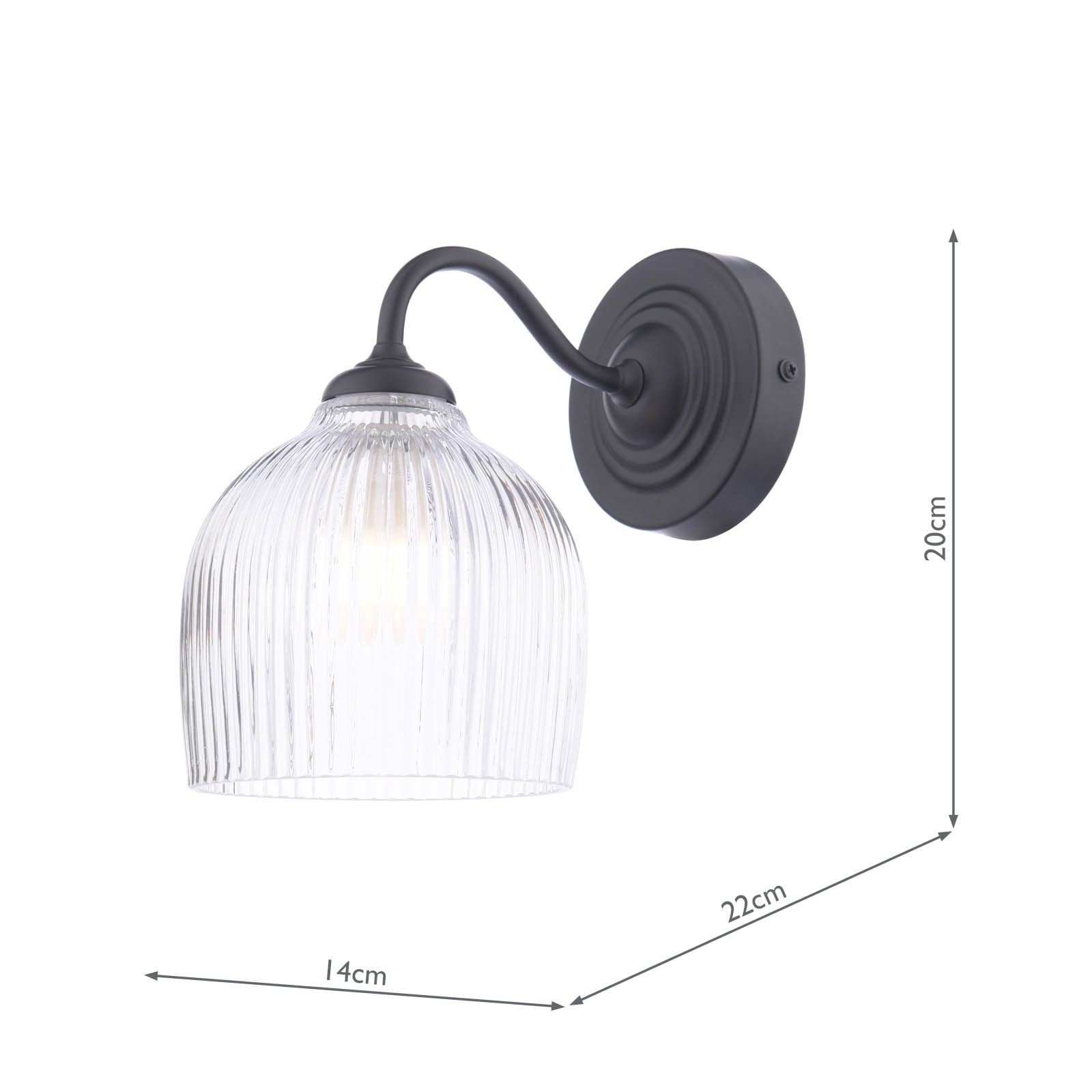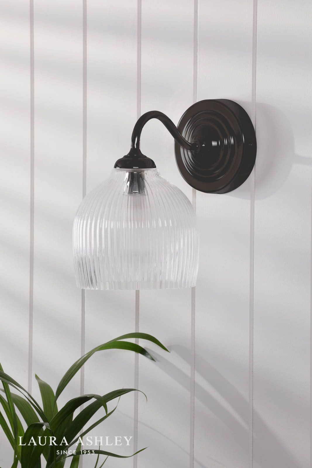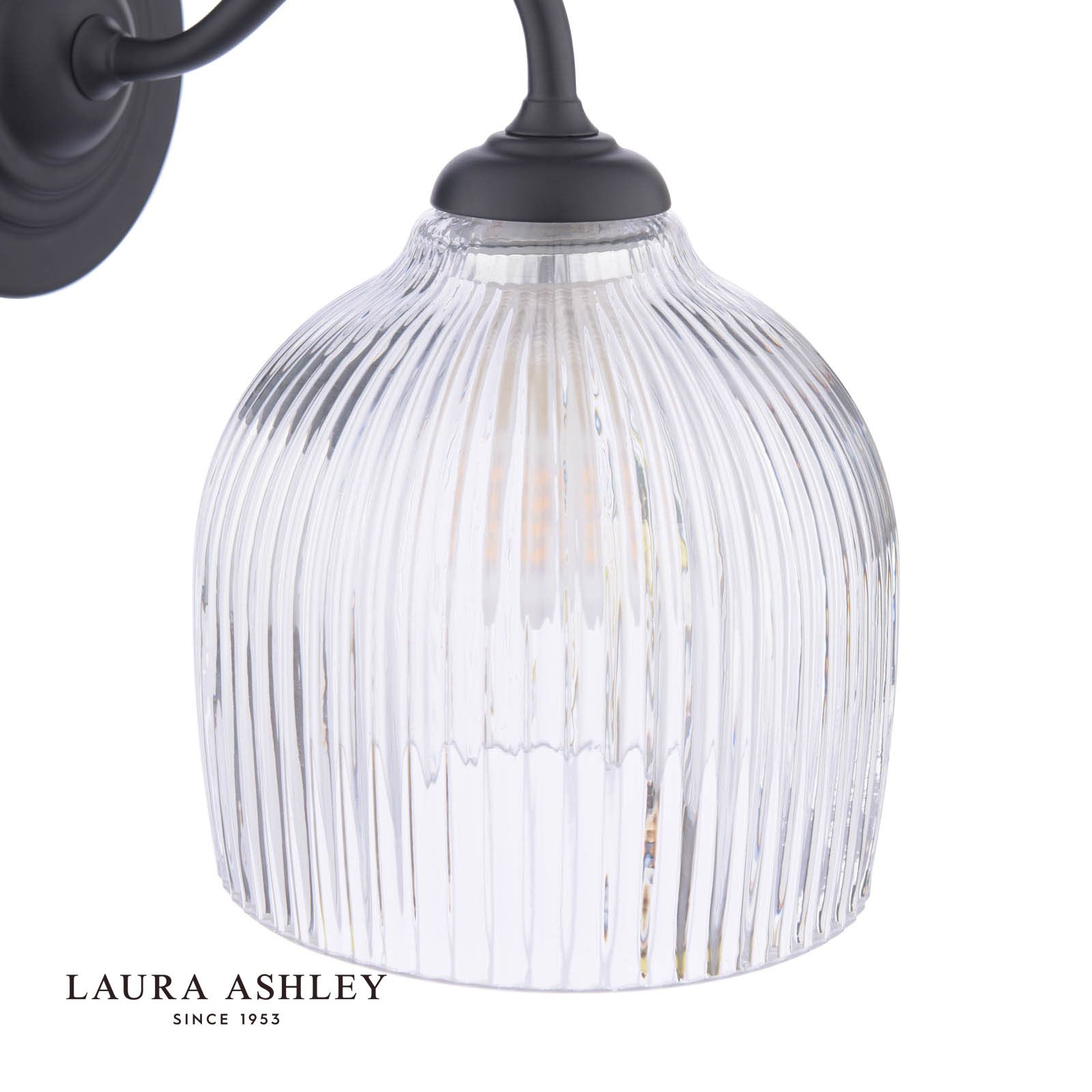 Laura Ashley Charissa Bathroom Wall Light Matt Black and Ribbed Glass IP44