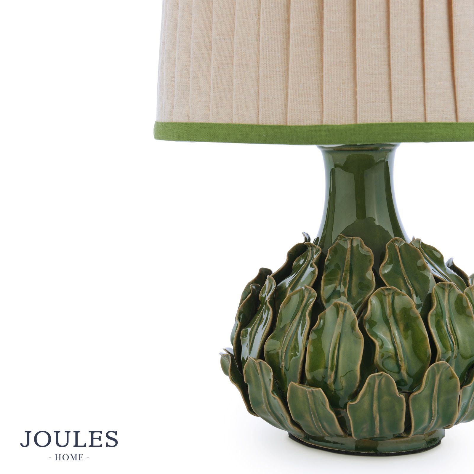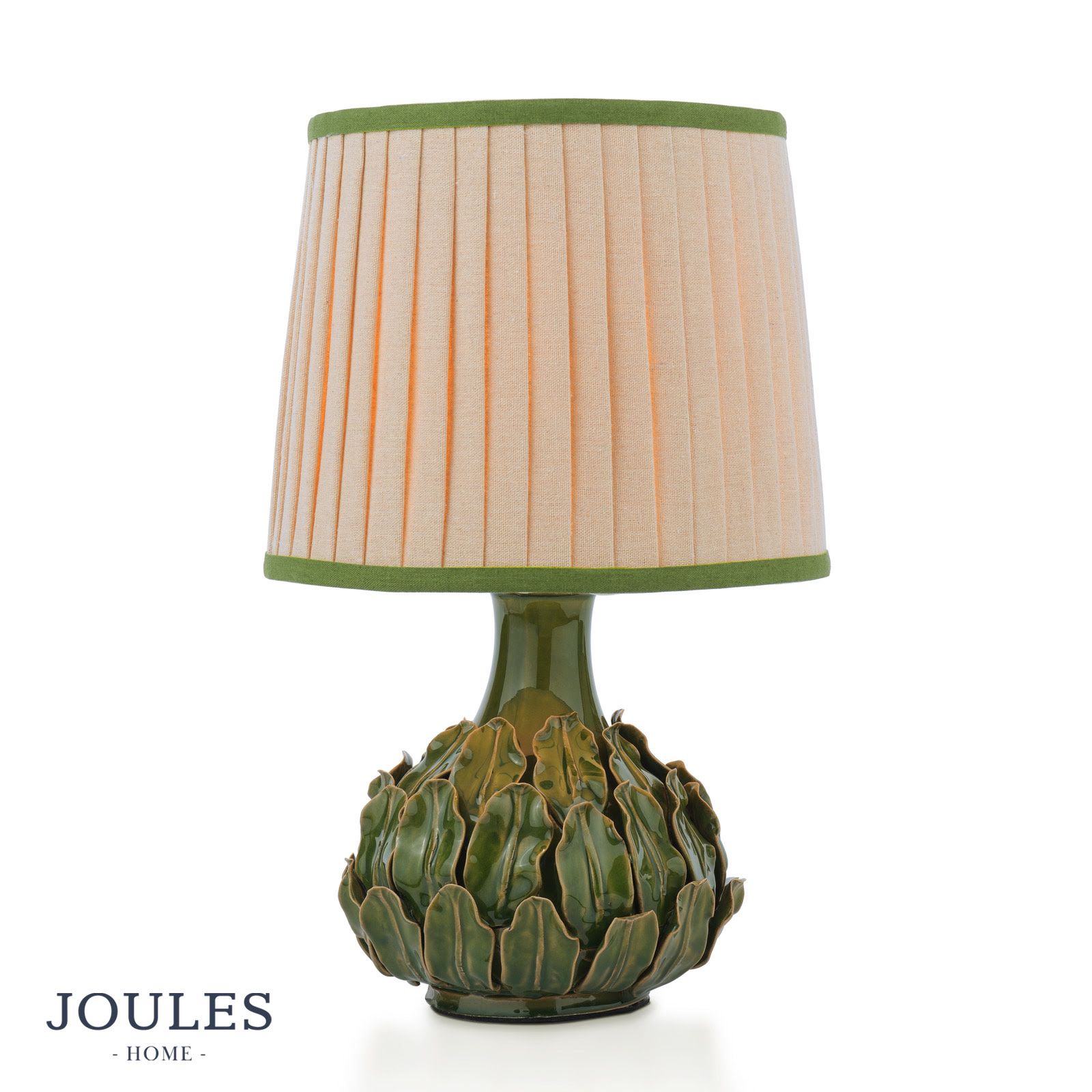 Joules Chatsworth Table Lamp Green Ceramic and Matt Antique Brass With Shade
