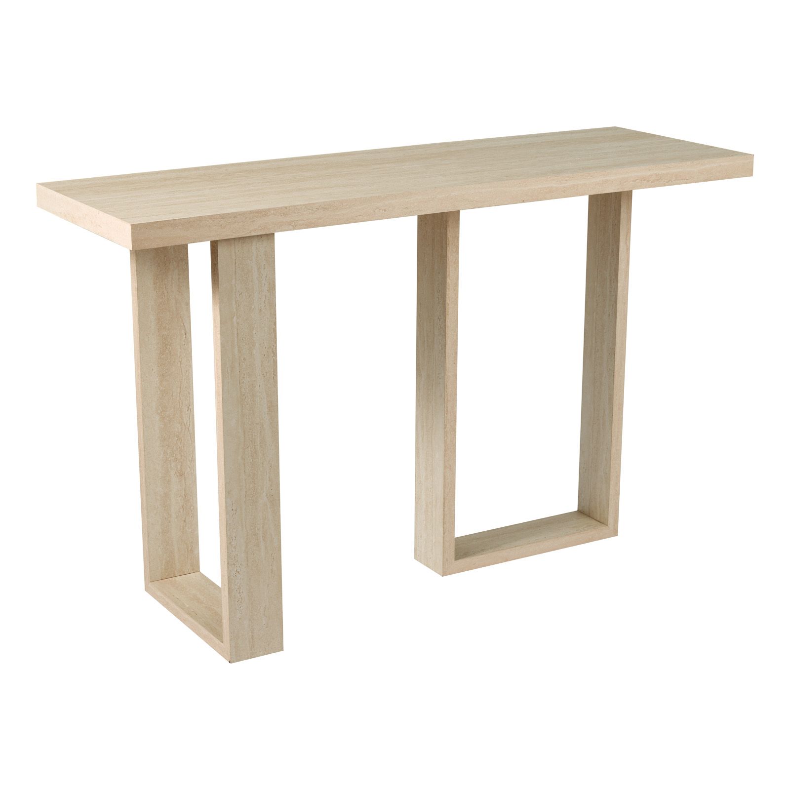 The Prue console table combines statement design with versatile function. Finished in a travertine-effect veneer, it captures the natural beauty of stone while offering a refined, contemporary look. With a generous 40cm depth, it can double as a slim desk for a laptop, making it ideal for hallways, studies, living rooms, or compact home office spaces. A striking addition to any interior, it pairs beautifully with natural and neutral schemes. To preserve its finish, avoid hot items, wipe spills promptly, and keep away from heat sources.