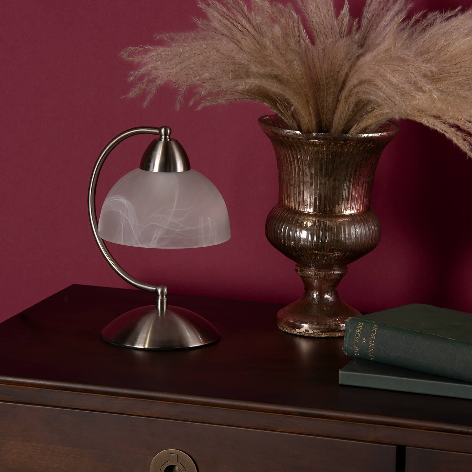 The Saxby Touch Table Lamp features a soft satin chrome finish with a beautiful alabaster glass shade. It's 3 stage touch operated, which makes it an ideal choice for use as a bedside light.