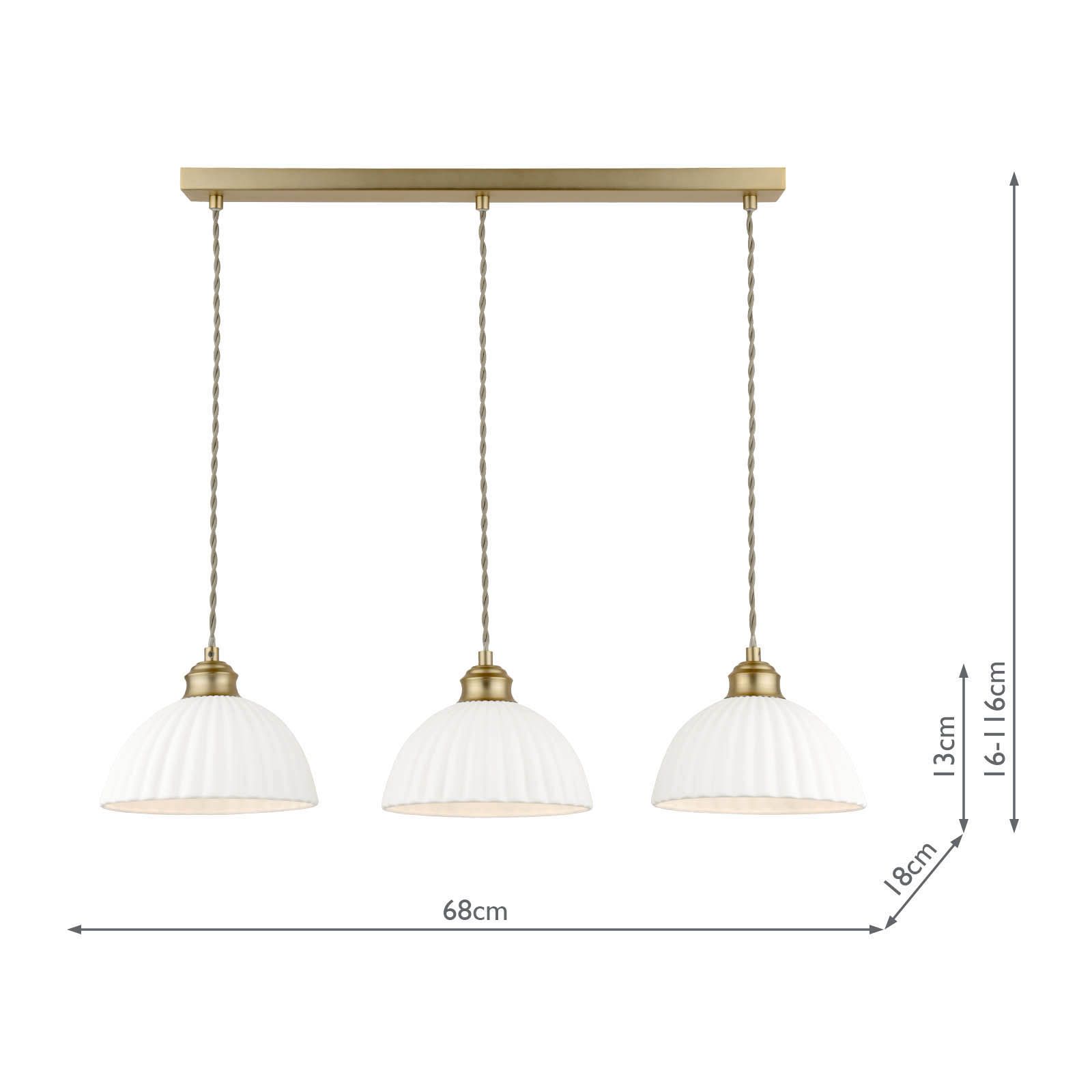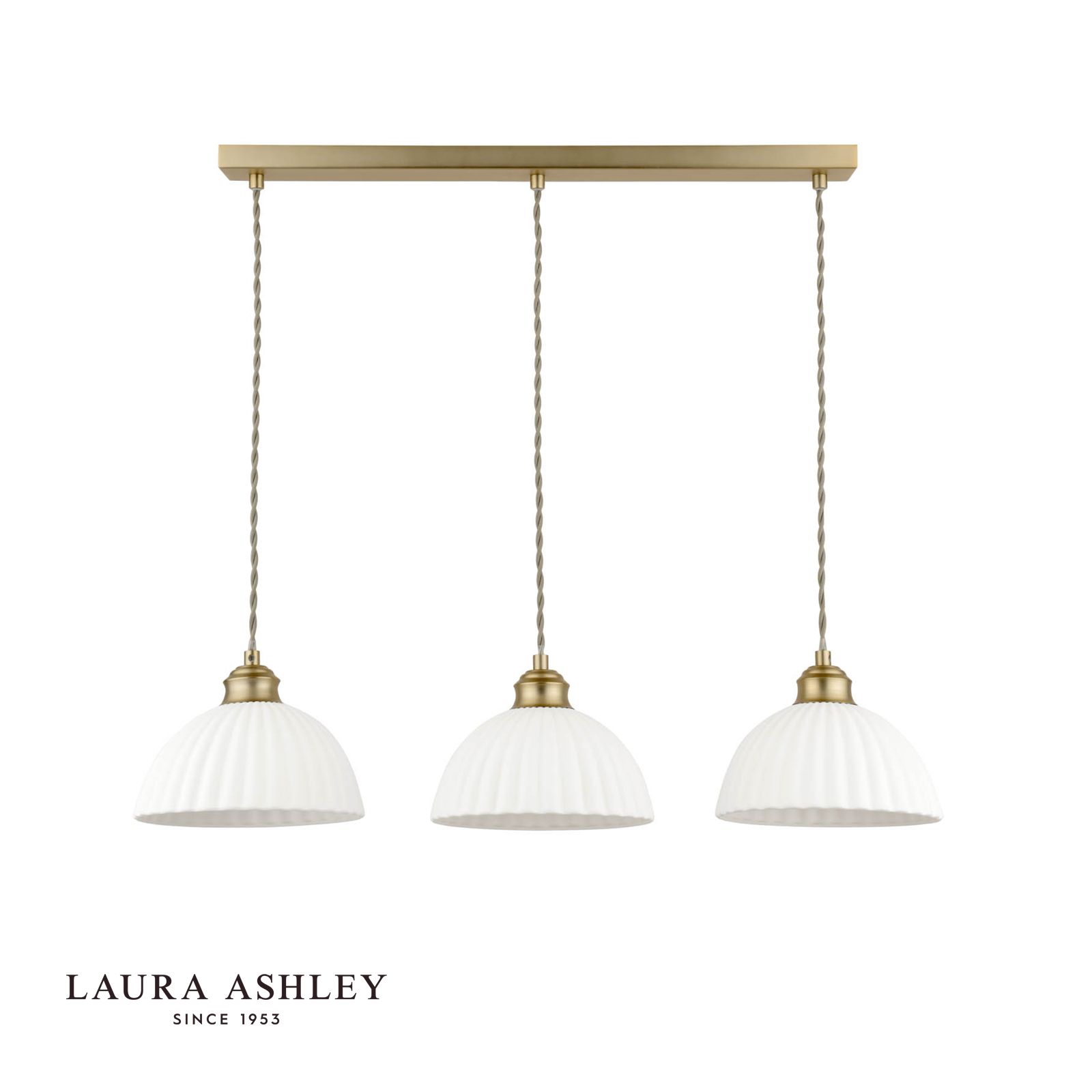 Laura Ashley Durford 3 Light Bar Pendant Matt Antique Brass and White Ceramic