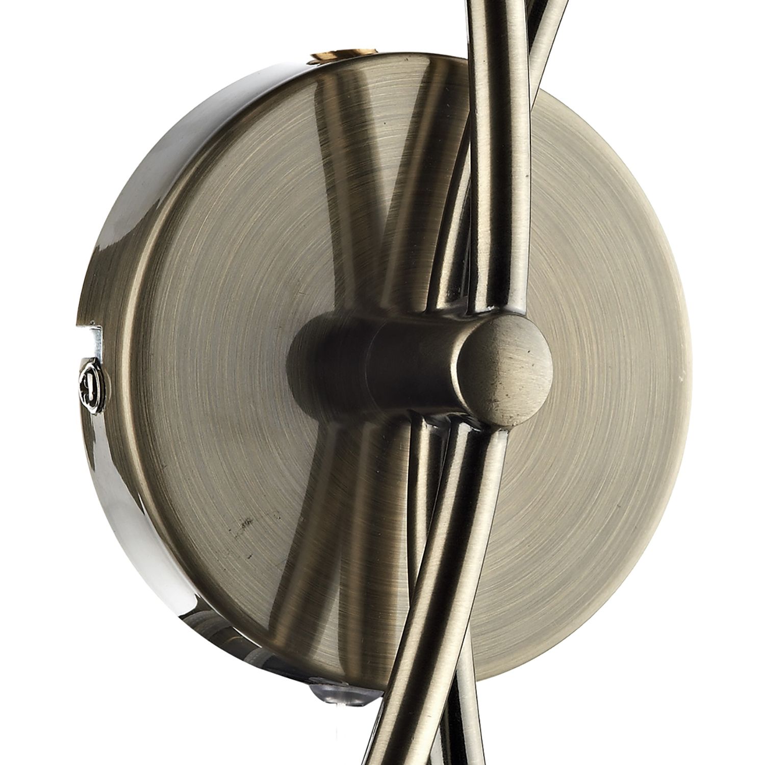The Seattle 2 Light wall light has clear sculptured glass shades with frosted inner detail upon an antique brass frame.