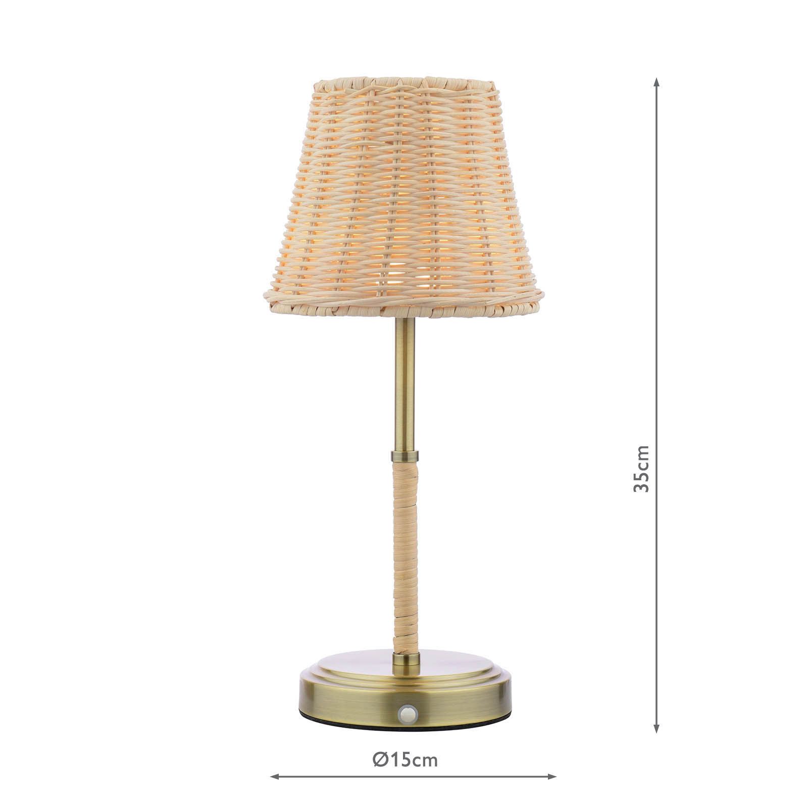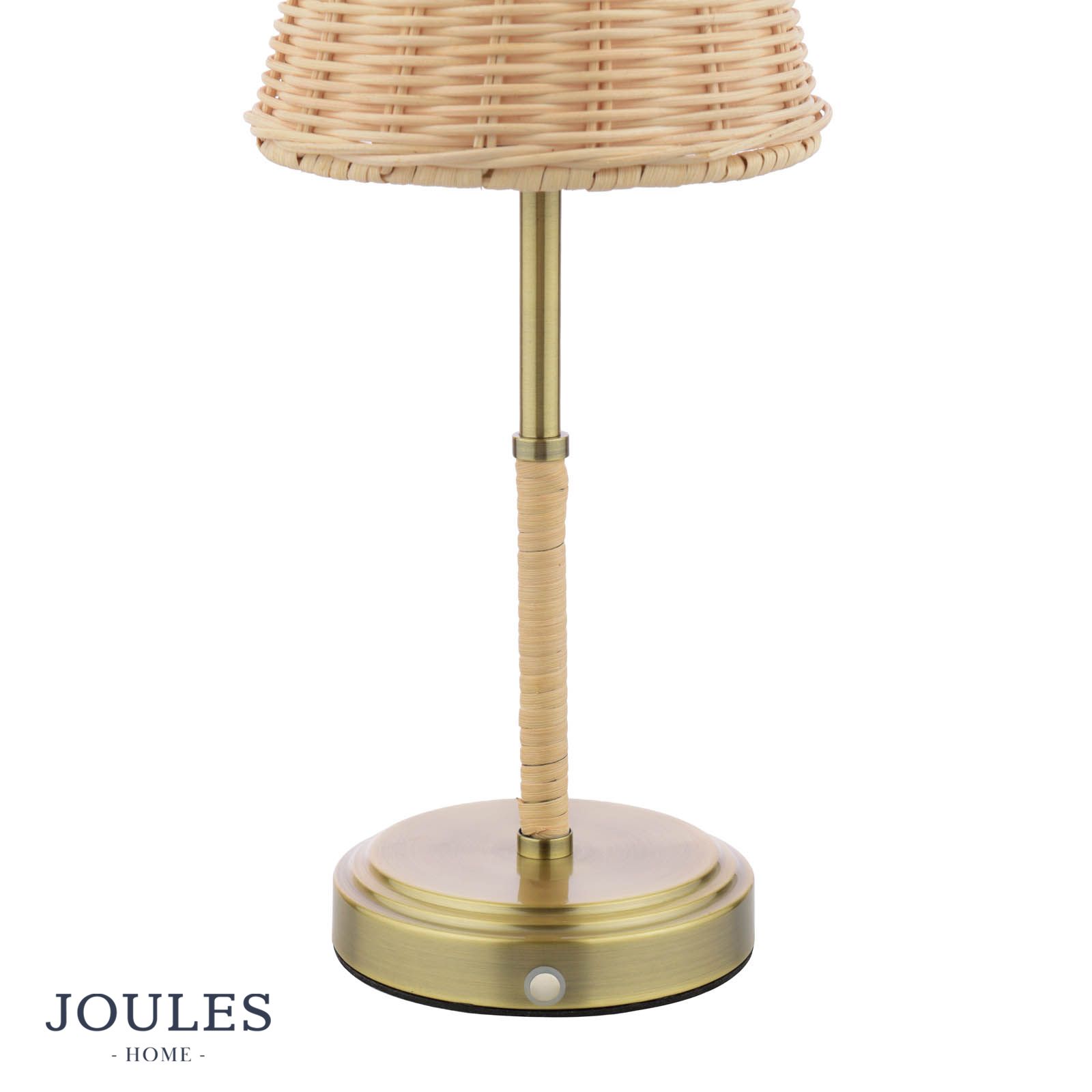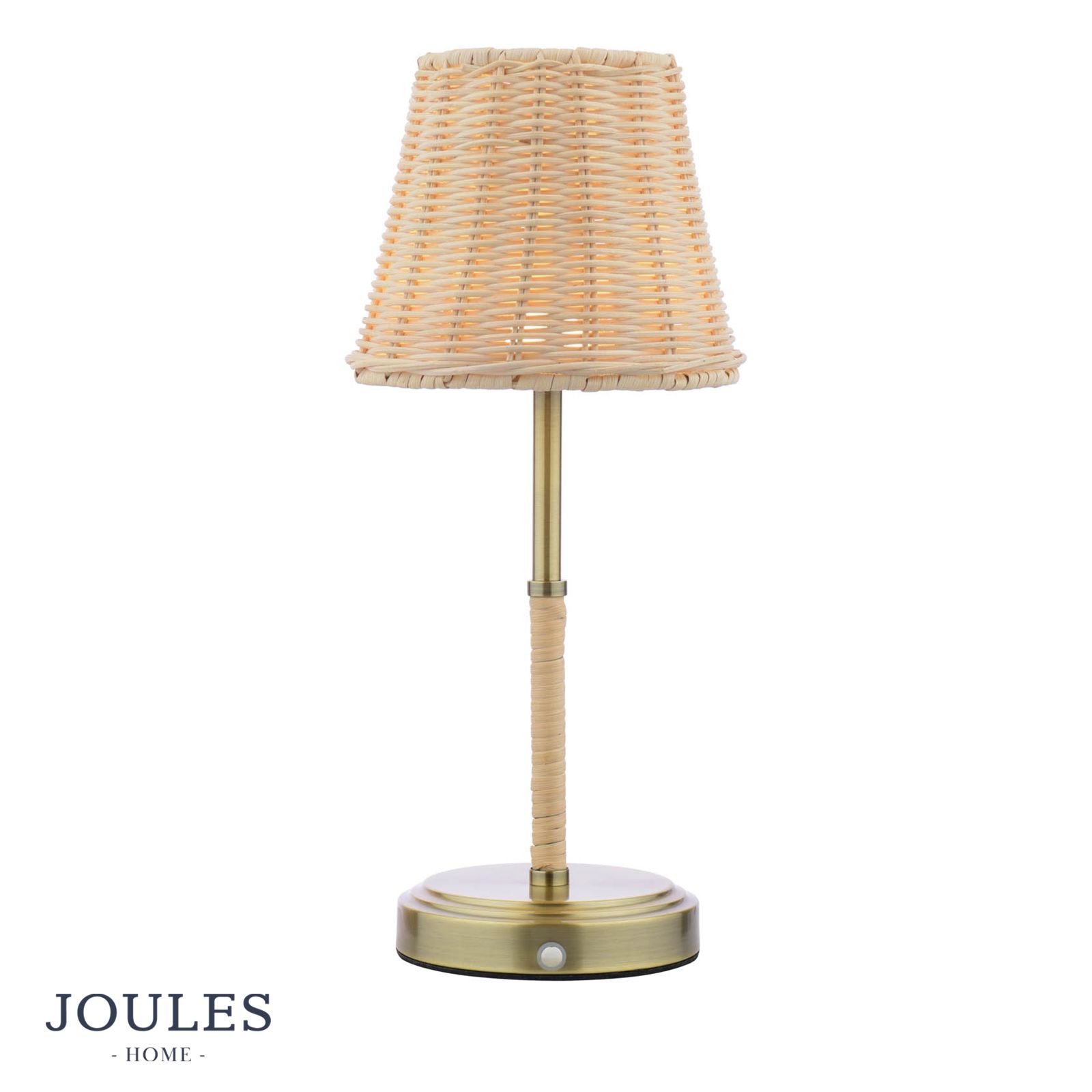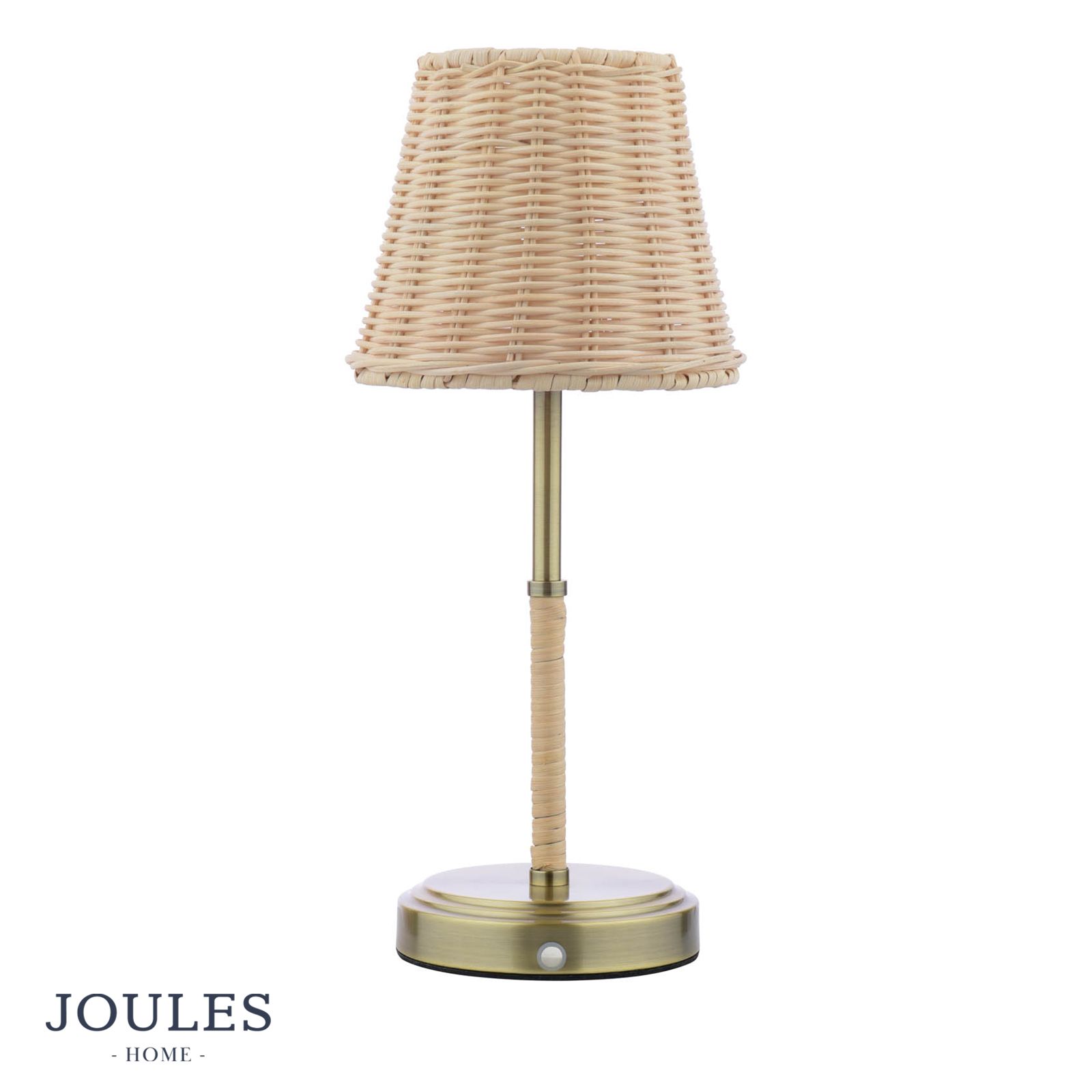 Joules Elcot Rechargeable Table Lamp Antique Brass With Rattan Shade LED