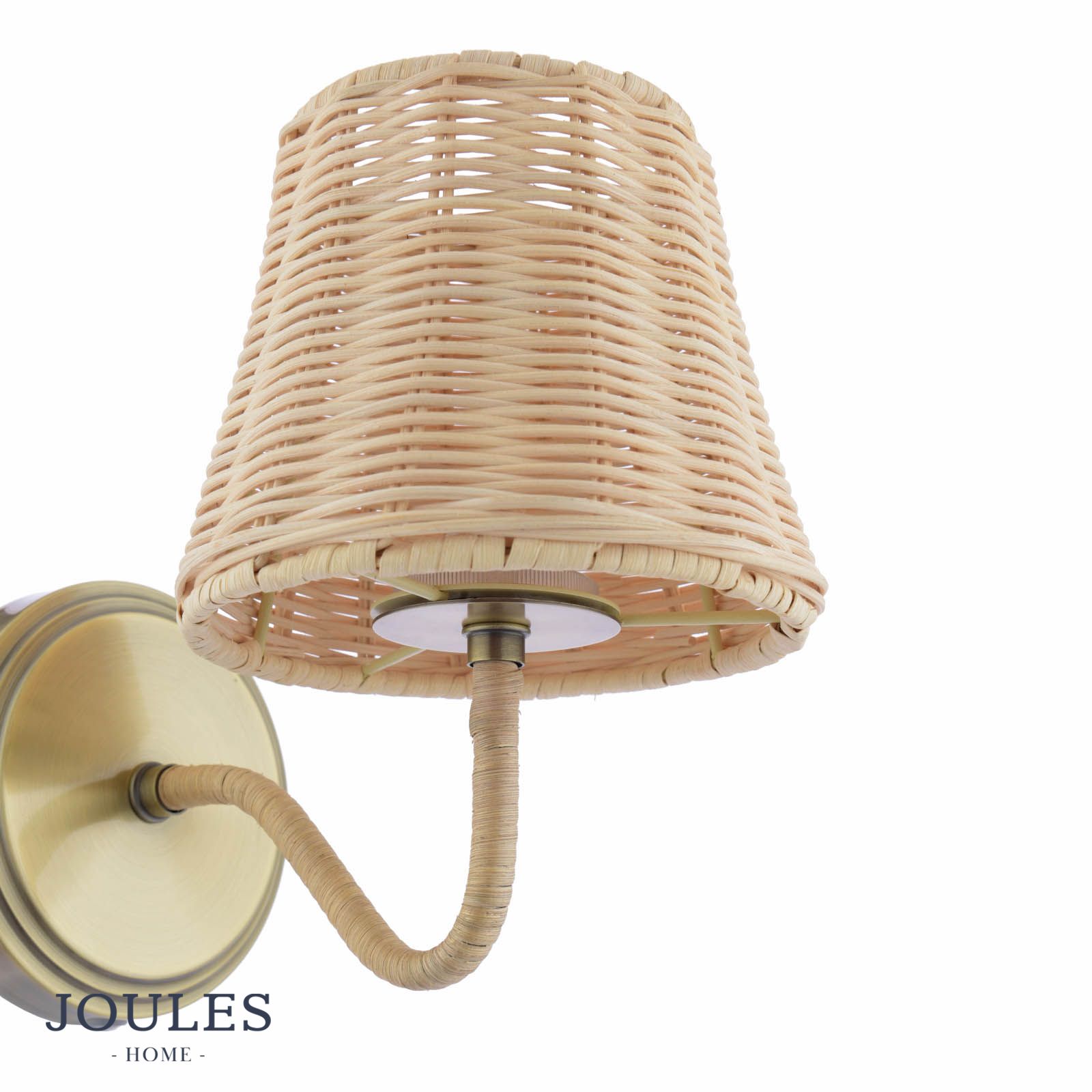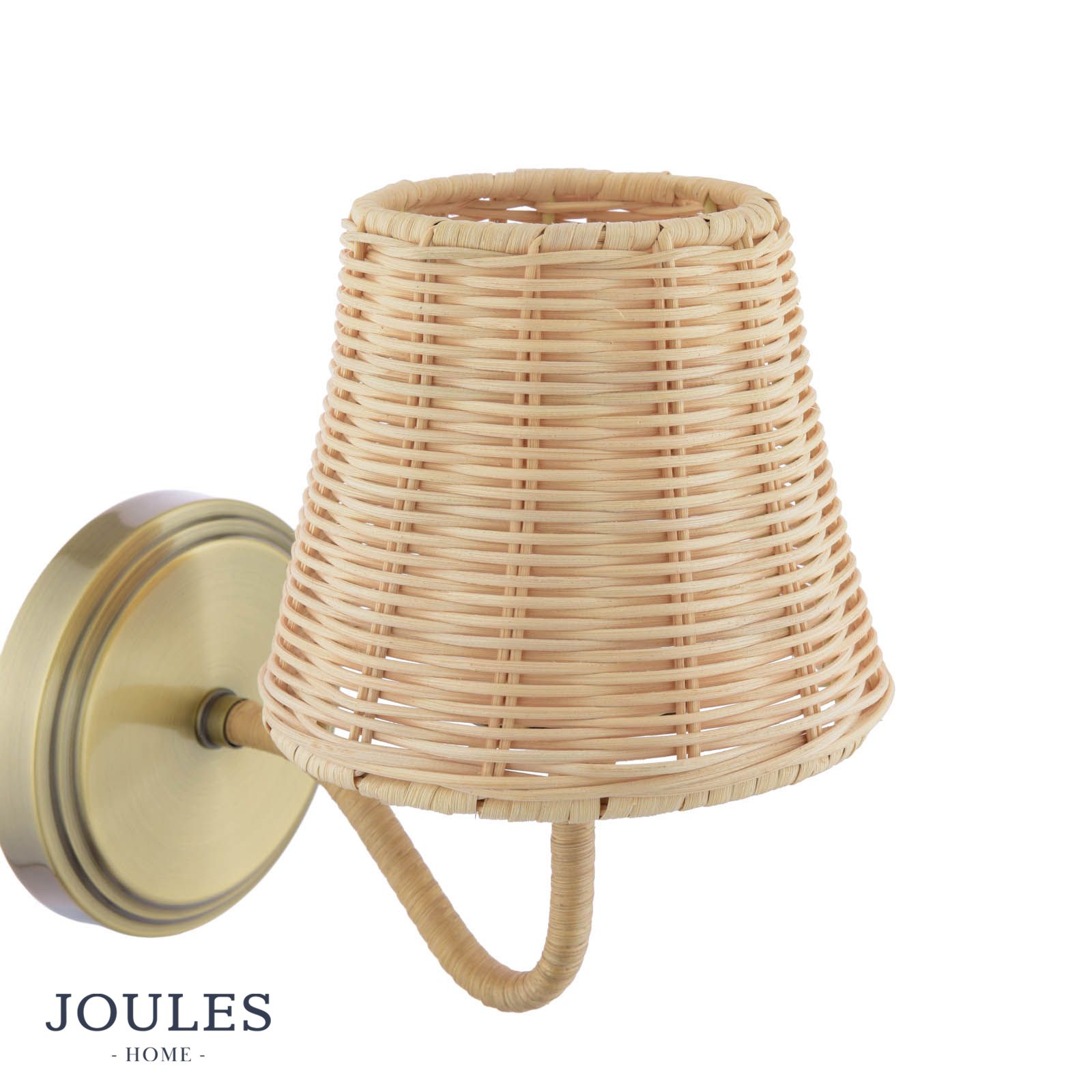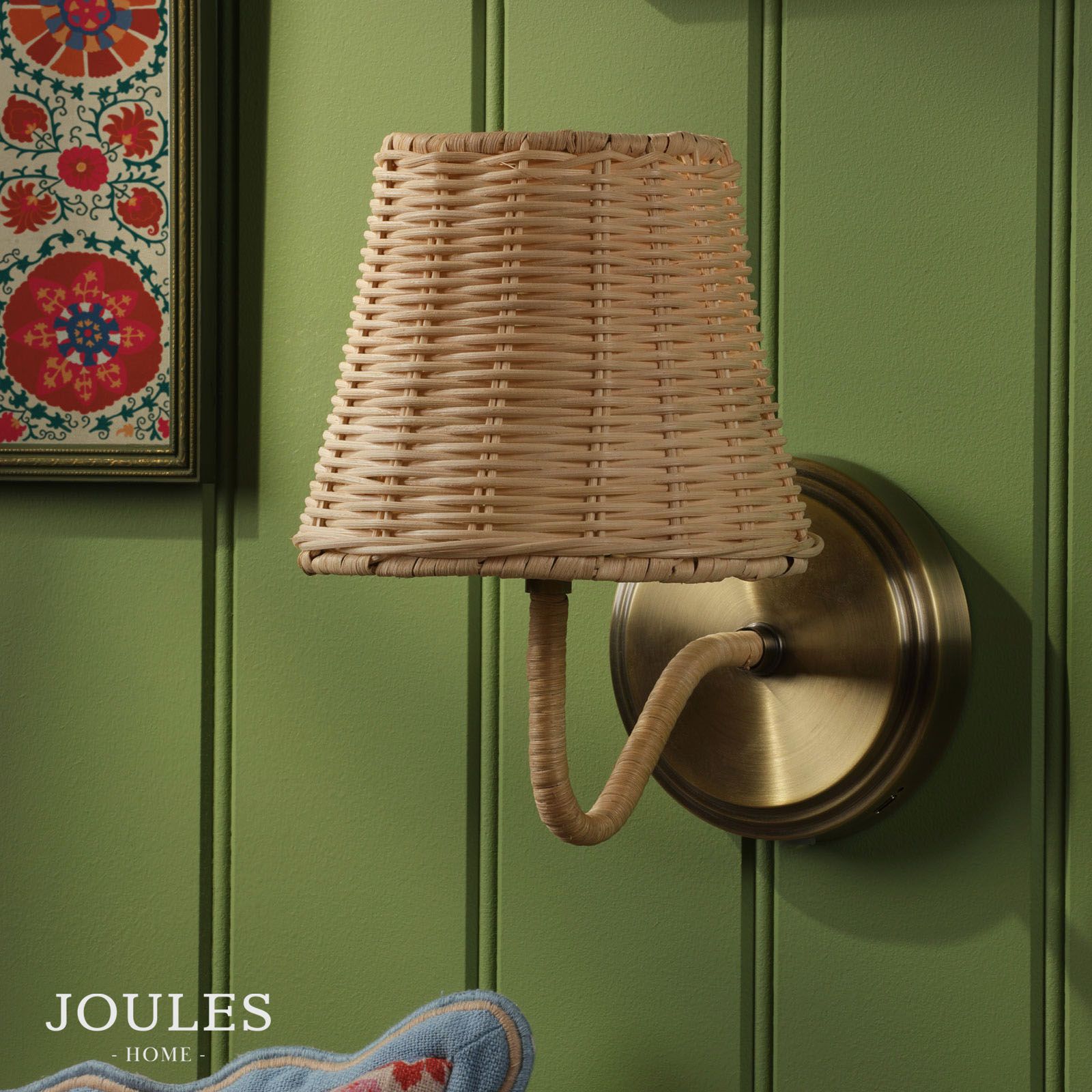 Joules Elcot Rechargeable Wall Light Antique Brass With Rattan Shade LED