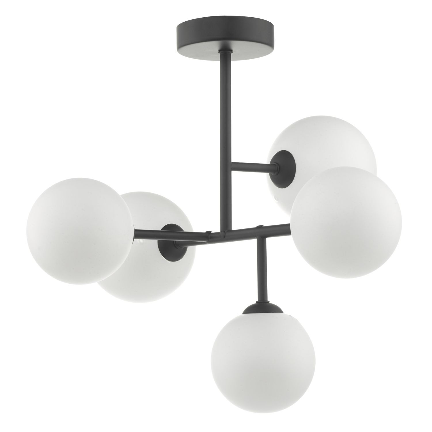 Euan 5 Light Semi Flush Black & Opal Glass