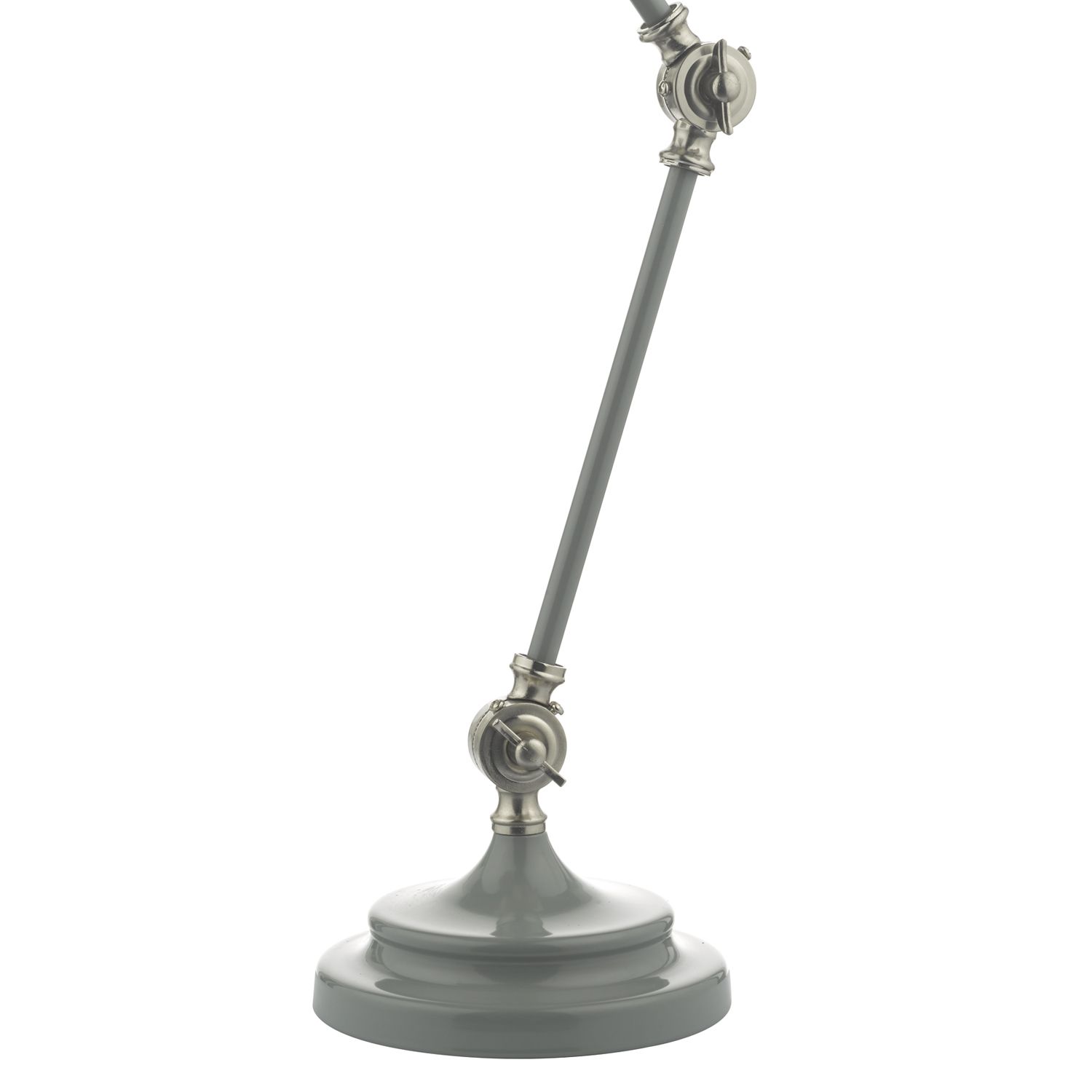 The Eunice Task Lamp features an adjustable head and arm that can be altered at the base and middle, allowing you to adapt the angle of the lamp and direct the light. Complete with satin nickel finished metalwork and a grey braided cable. Ideal for offices and studies or for adding a modern aesthetic to you living space.