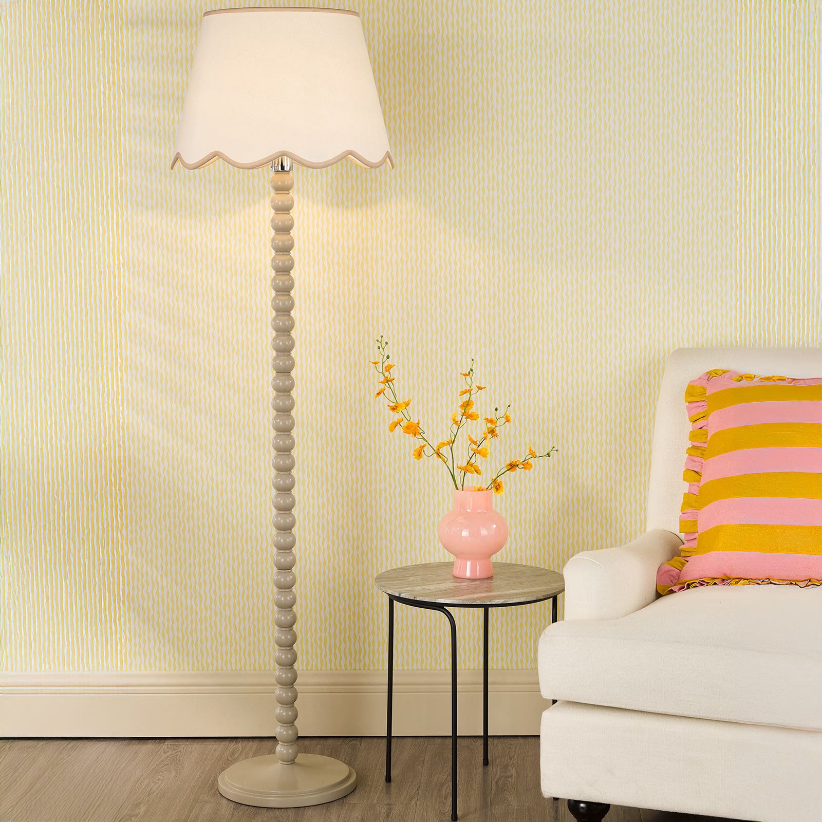 Make a statement with the Spool Floor Lamp paired with the Poma Shade – a striking blend of colour, form and natural texture. The tall, sculptural bobbin-style base in a striking taupe hue brings playful character and modern charm, while the Poma Shade in natural linen with a taupe scalloped edge adds soft texture and Boho-inspired elegance. Perfect for living rooms, reading corners or bedrooms, this floor lamp creates a warm, inviting glow and a touch of artistic flair. A beautifully balanced design that combines contemporary colour with timeless craftsmanship.