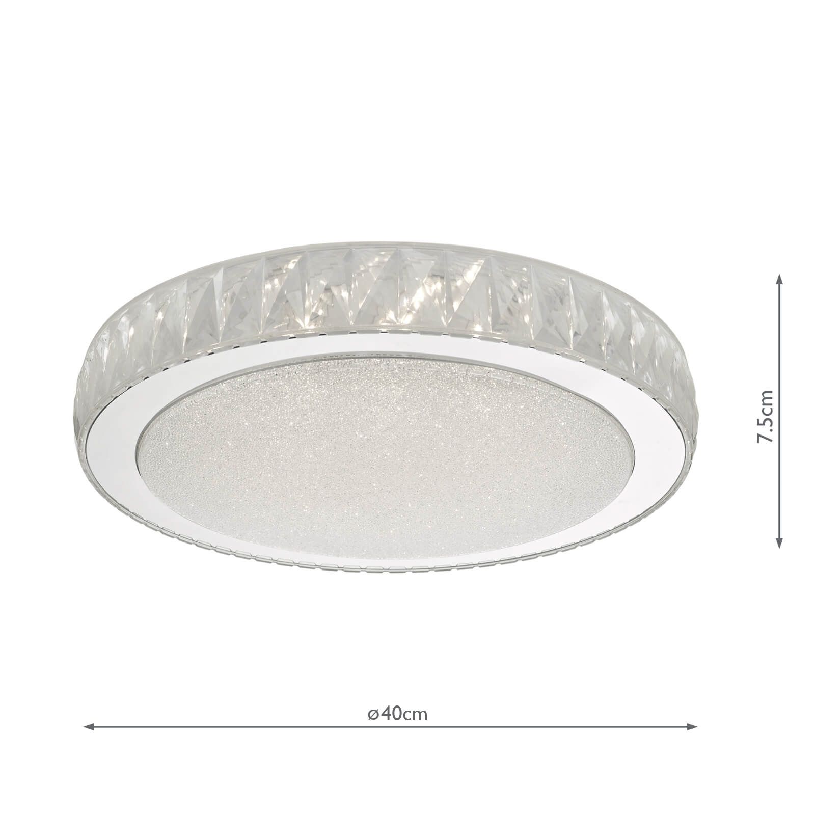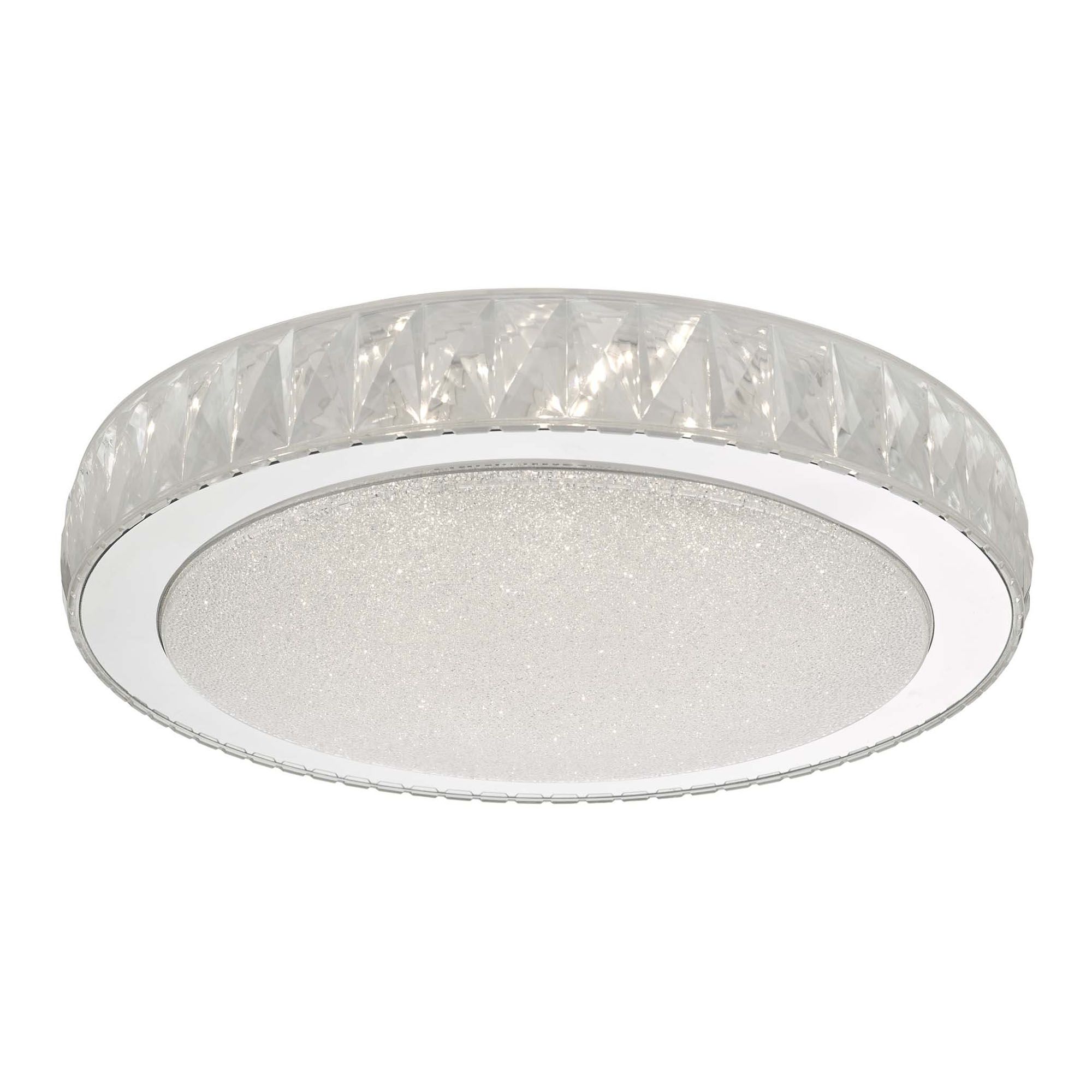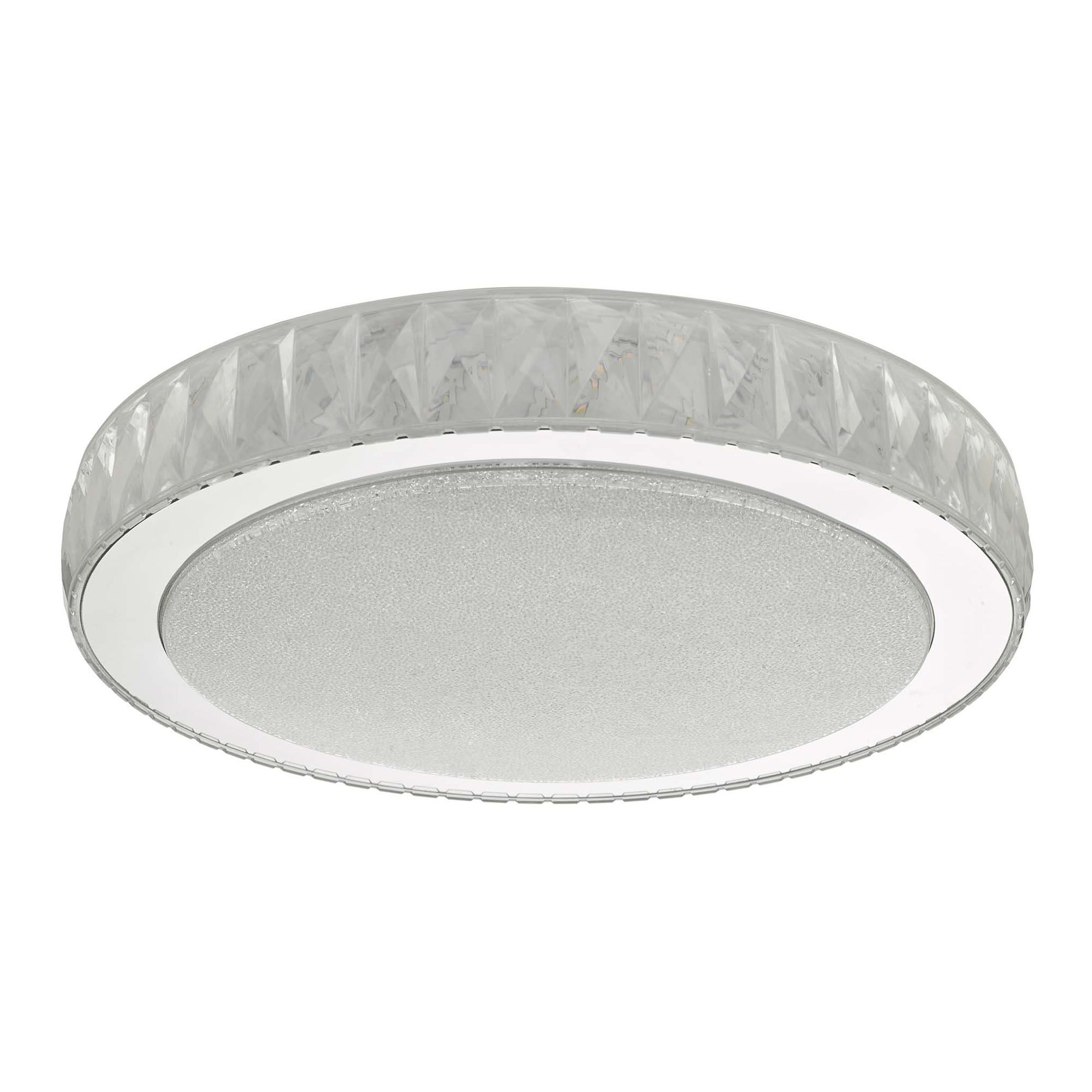 The Akelia Flush is a sleek flush fitting that features integrated LED technology, providing both style and efficiency. Crafted from high-quality acrylic that mimics the brilliance of crystal, this fixture is adorned with a diffuser containing thousands of sparkling crystal-like pieces, all set within a polished stainless steel frame.
