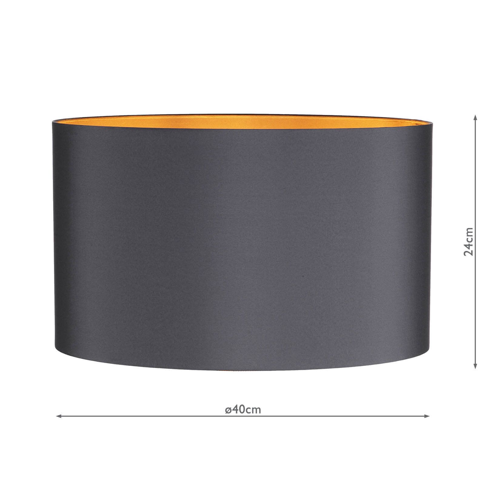 The Helicon faux silk drum shade in grey with matching lining, as featured on our HEL4239 Table Lamp.