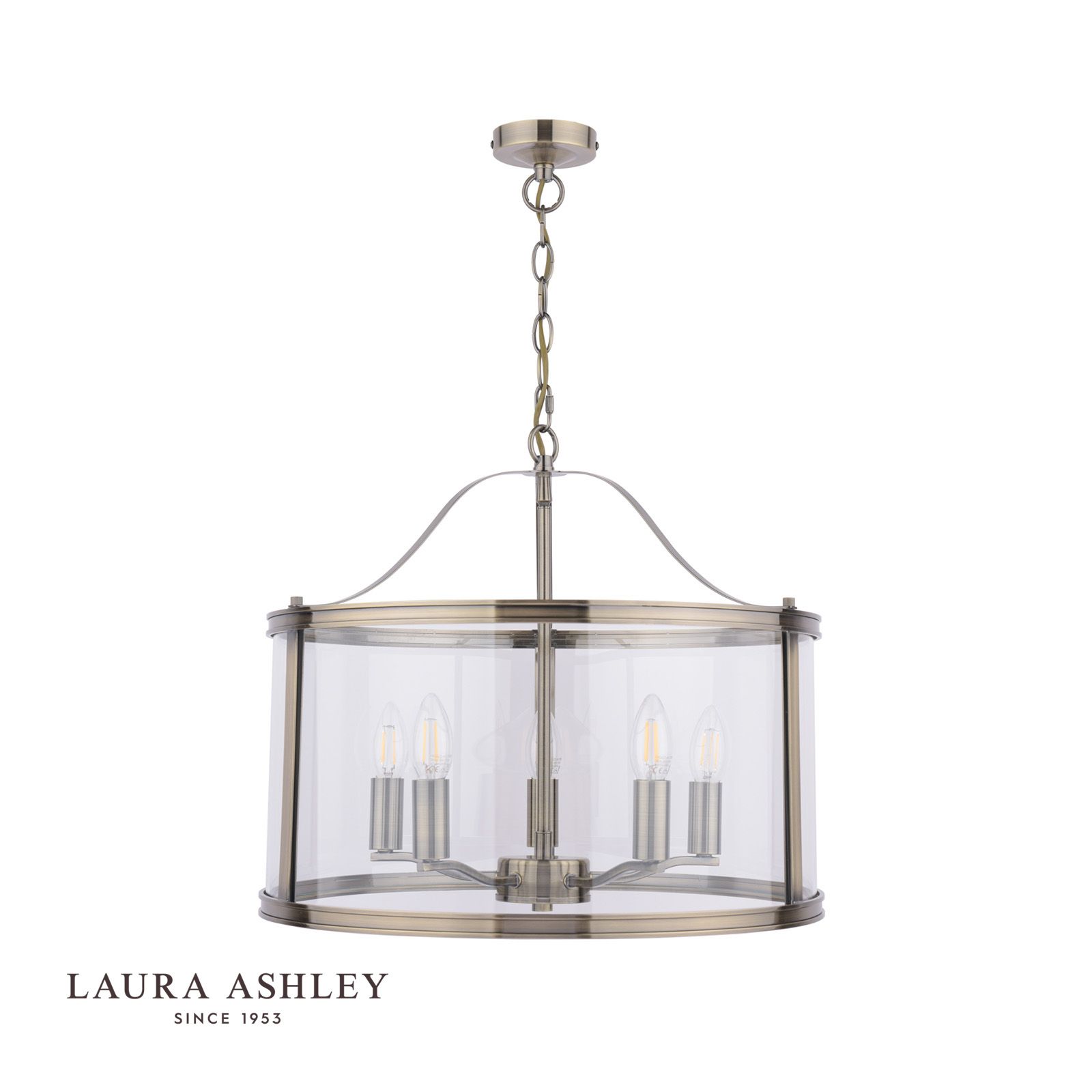 Laura Ashley Harrington 5 Light Pendant Antique Brass & Glass