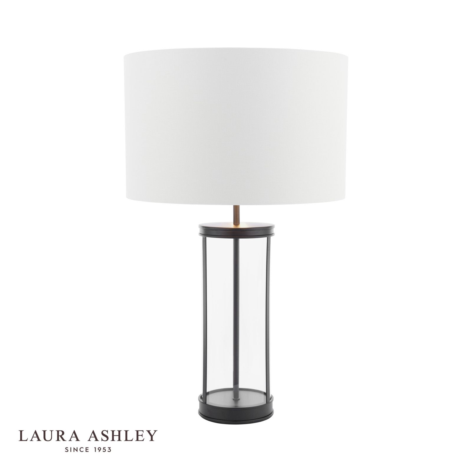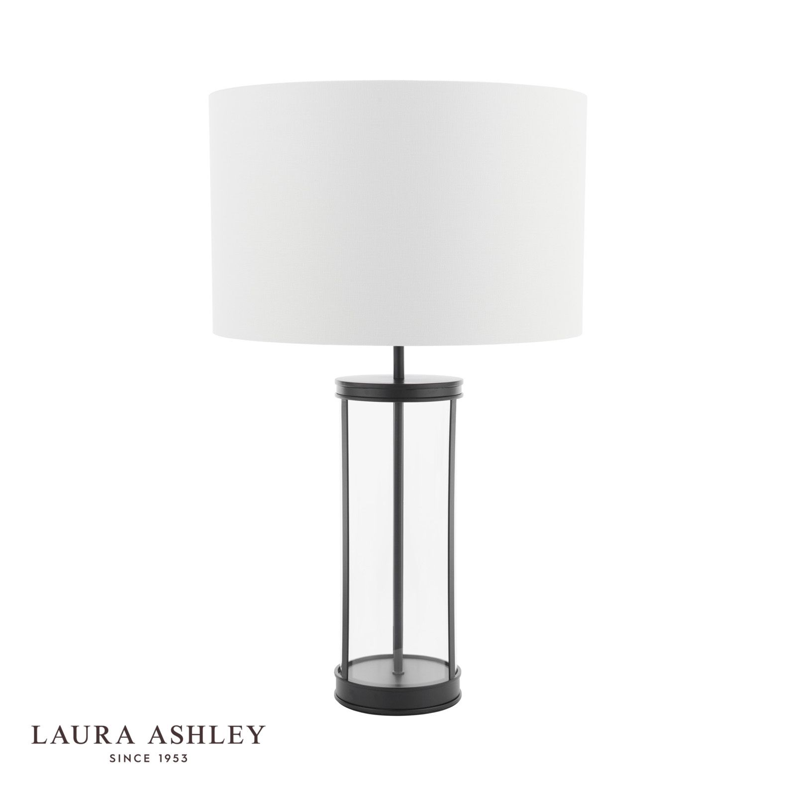 Laura Ashley Harrington Large Table Lamp Matt Black and Glass With Shade