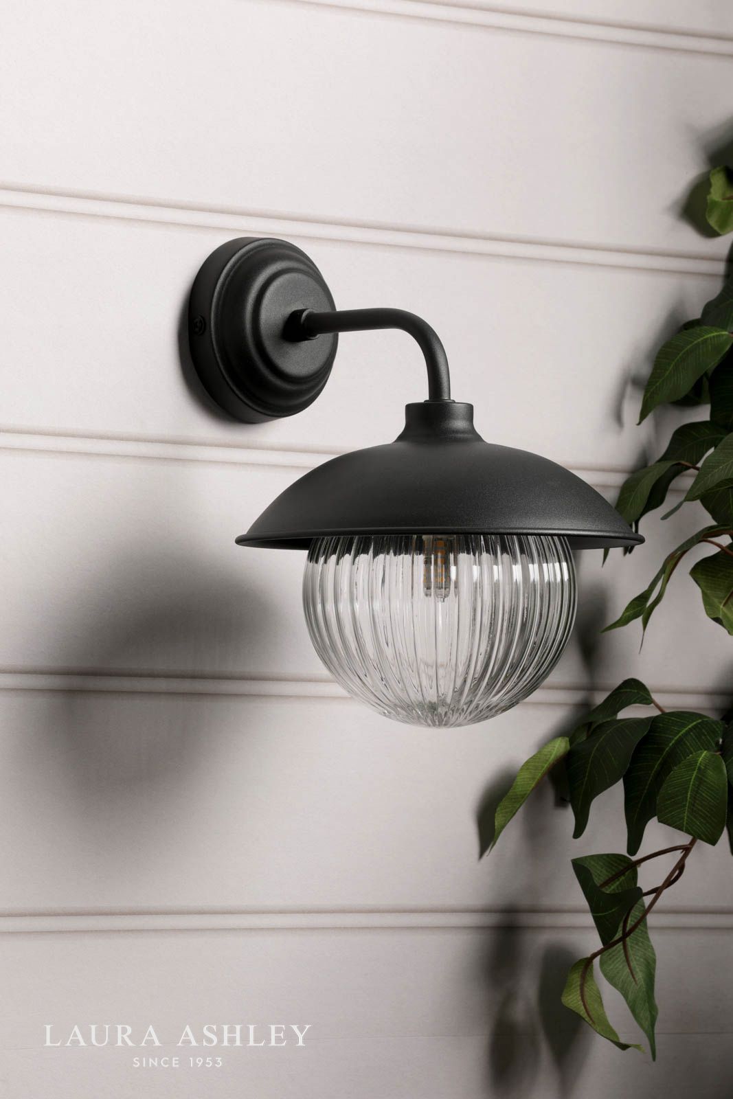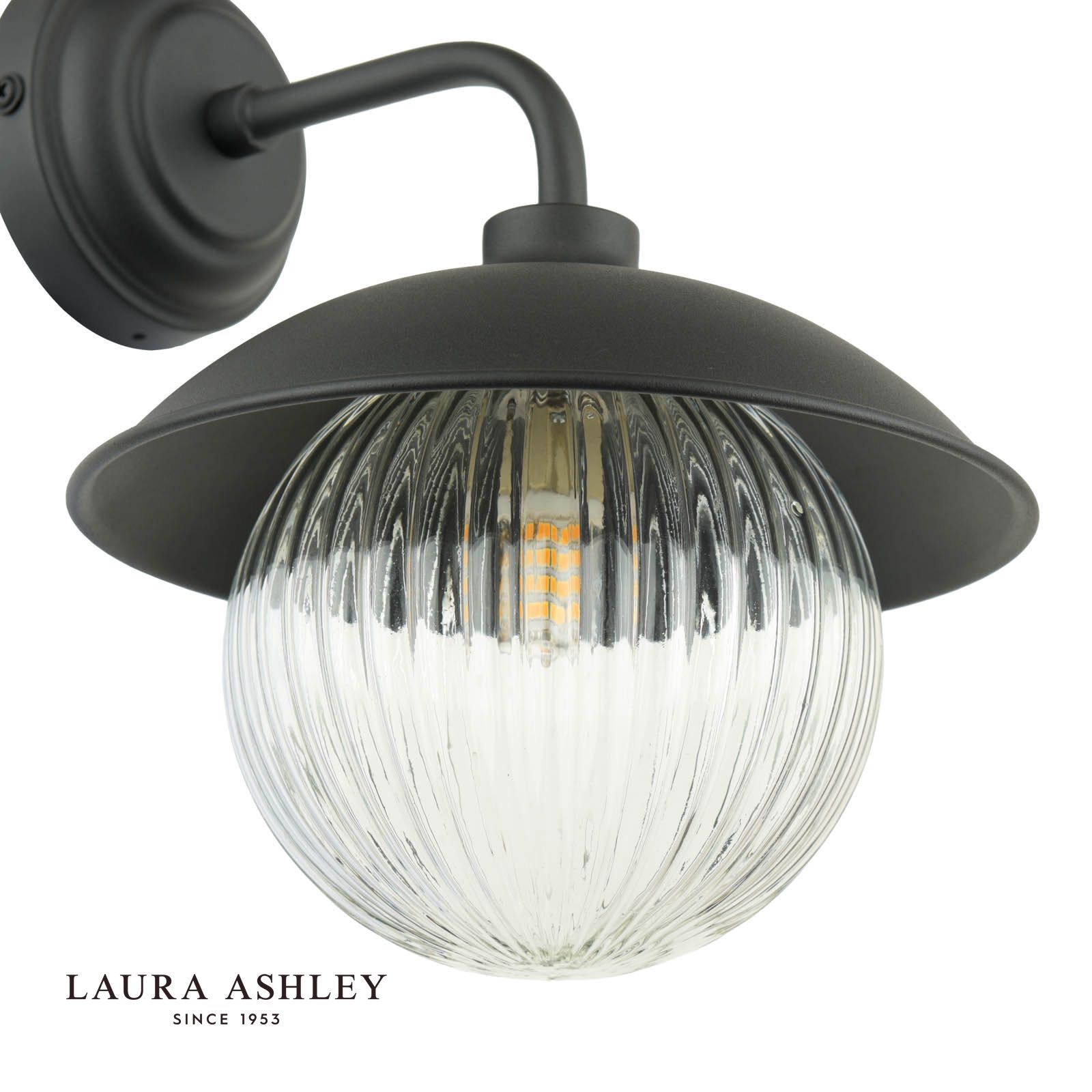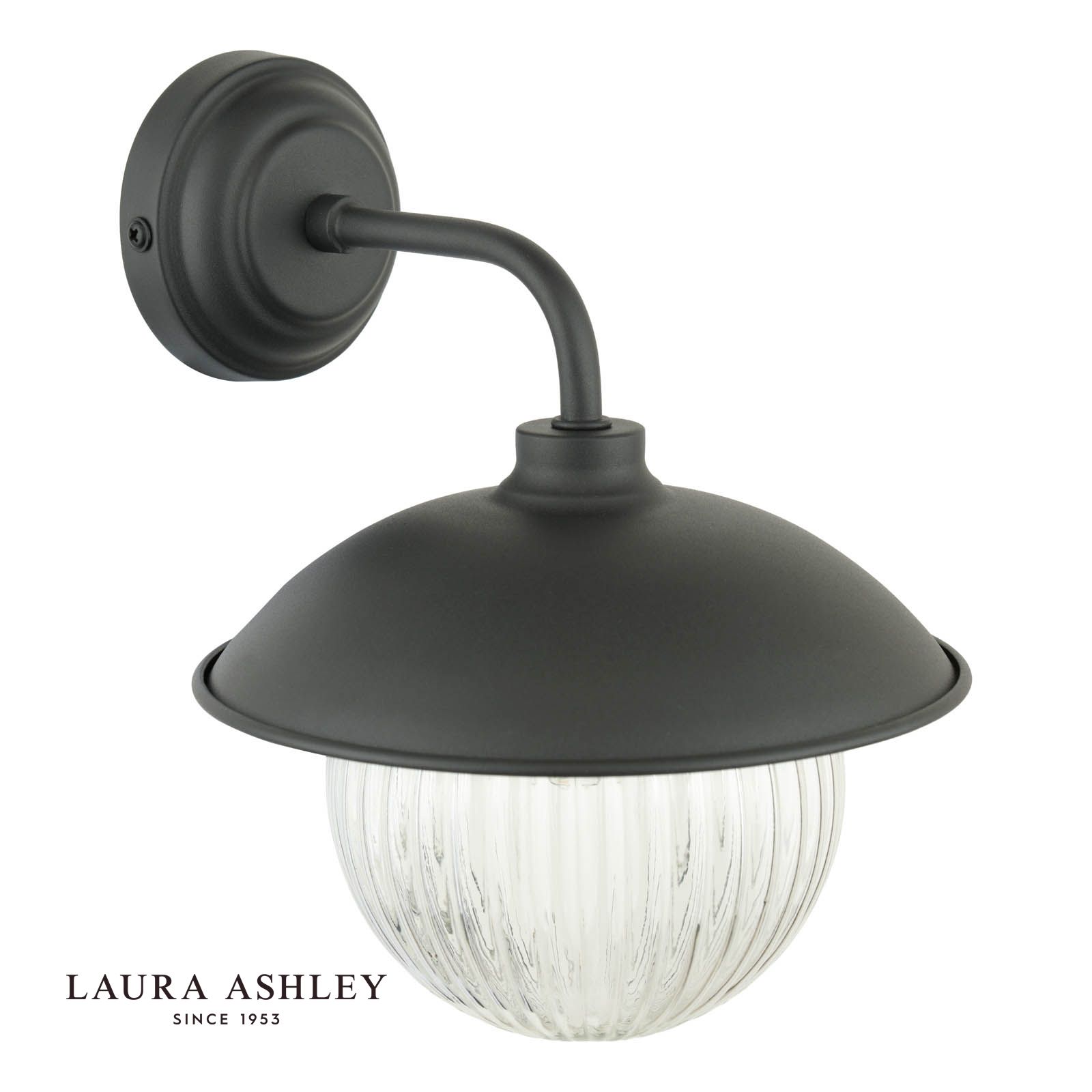Laura Ashley Hatton Outdoor Wall Light Matt Black and Ribbed Glass IP44