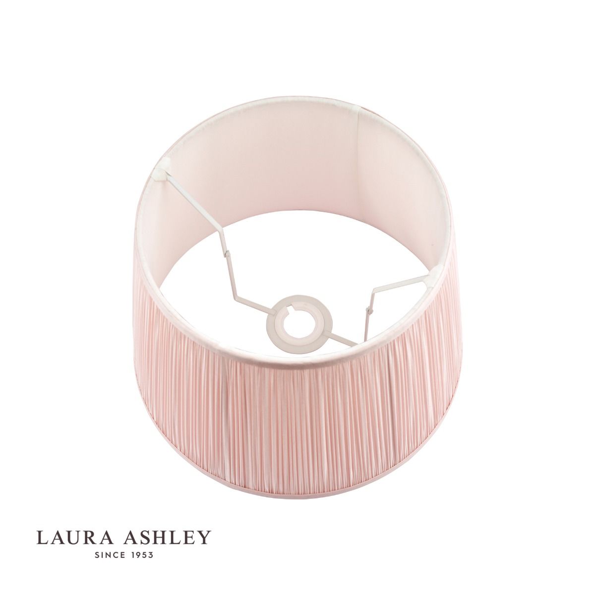 The Laura Ashley Hemsley lightshade has a classic, slightly angled, Empire drum form. The diameter of this size is 20cm. Here we finish it in an elegant, pleated smooth silk in pink.