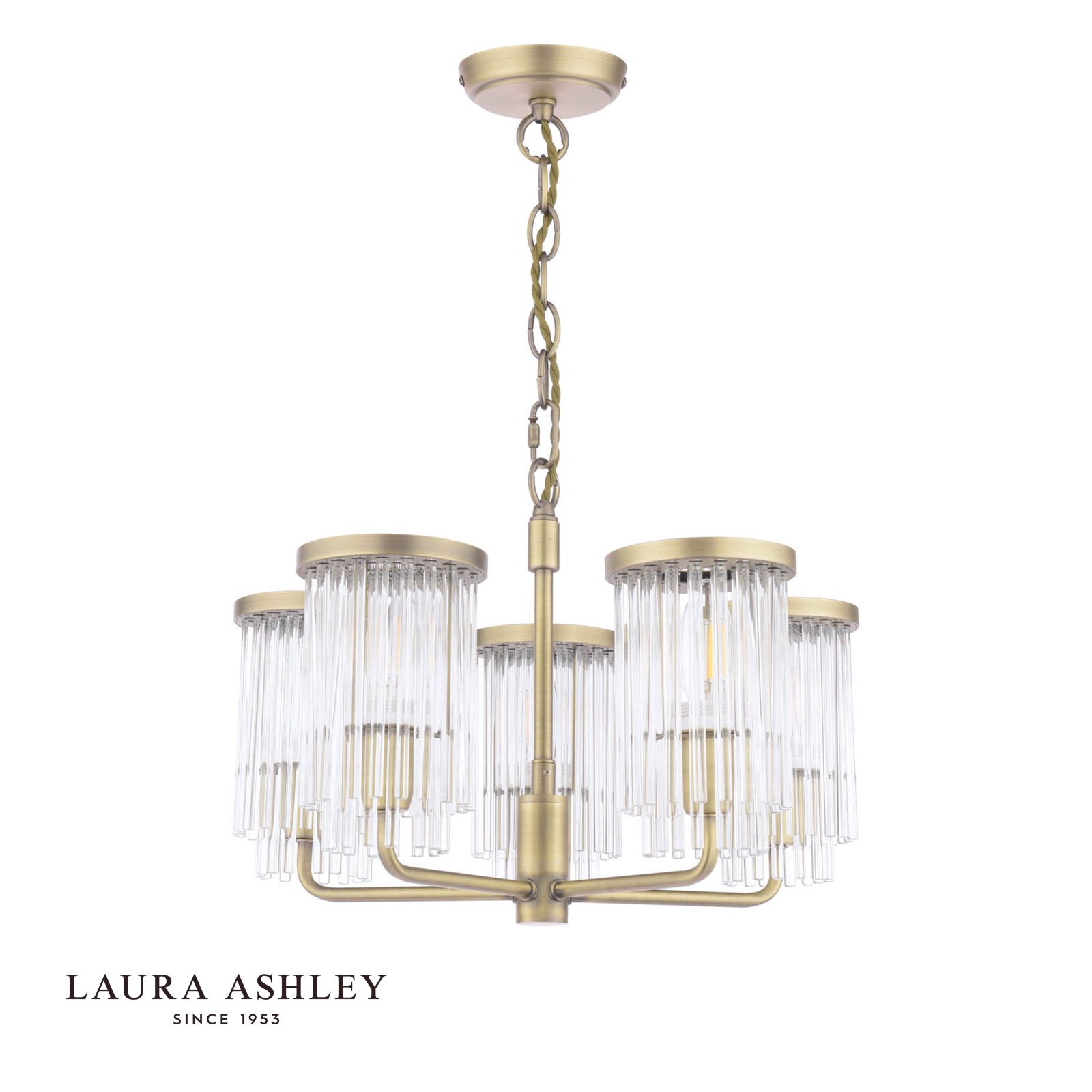 Laura Ashley Hilcote 5 Light Armed Pendant Matt Antique Brass and Glass
