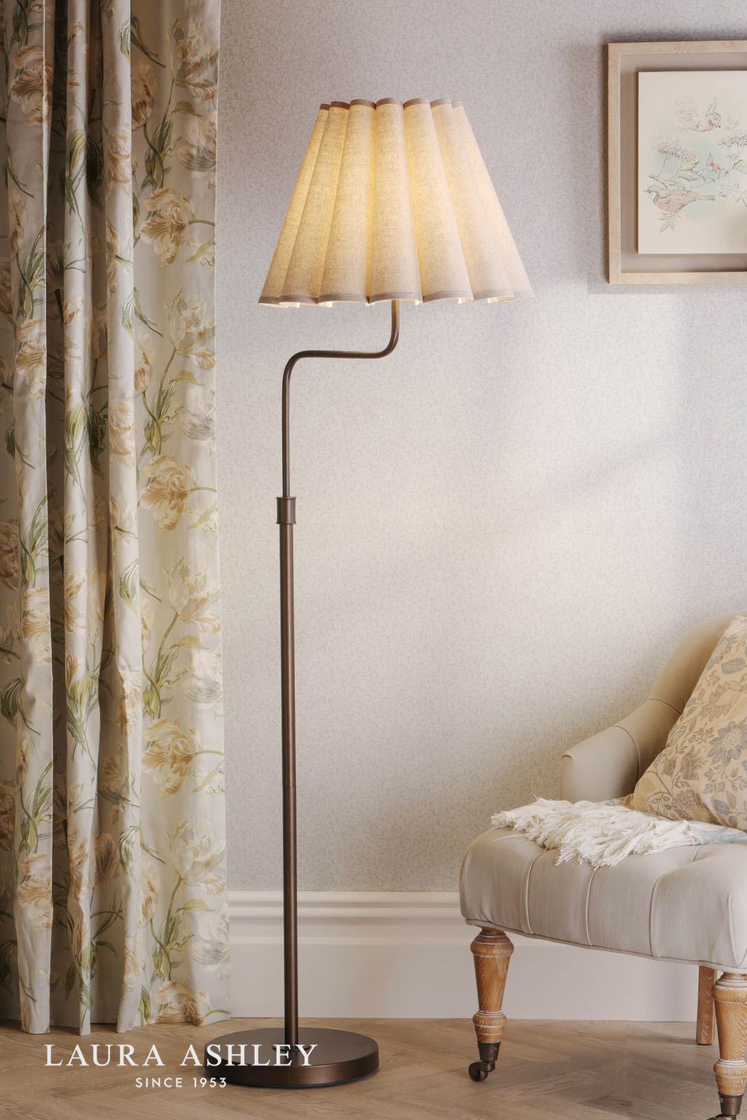 Infuse any living space with warmth and timeless British style. The Laura Ashley Holwell floor lamp, with its antique bronze finish and natural linen shade, casts a soft, ambient glow that instantly evokes a cosy, welcoming atmosphere. This versatile standing lamp blends vintage and modern design, its classic silhouette and rich patina beautifully complementing contemporary or traditional decor. Place it in the corner of your living room for atmospheric lighting while curling up with a book, or use it to create an inviting pool of light beside your favourite reading chair. With Laura Ashley's renowned quality and eye for tasteful elegance, this floor lamp makes a sophisticated statement piece that elevates your home with effortless British charm.